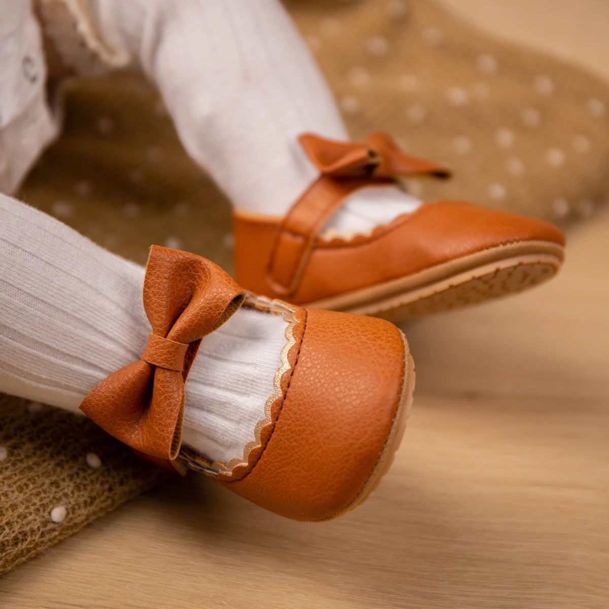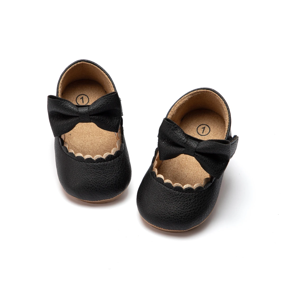 Comprar KIDSUN-zapatos de princesa para bebé, zapatos de jardín con lazo infantil, antideslizantes, versátiles, suela suave de goma, planos de PU, primeros pasos, estilo Manor para recién nacido