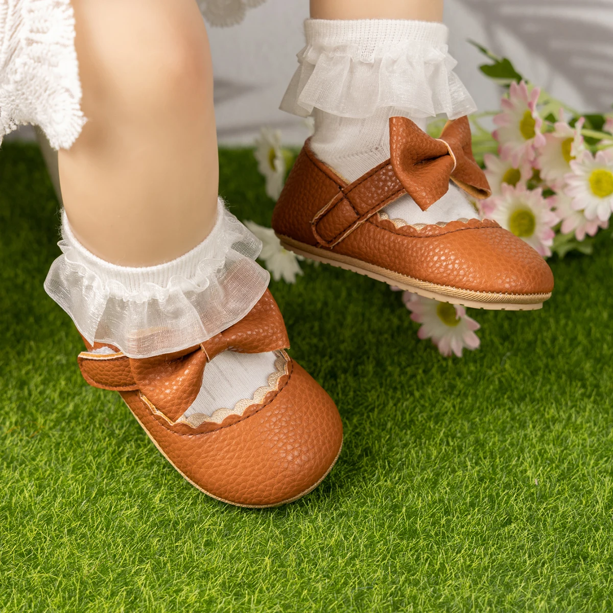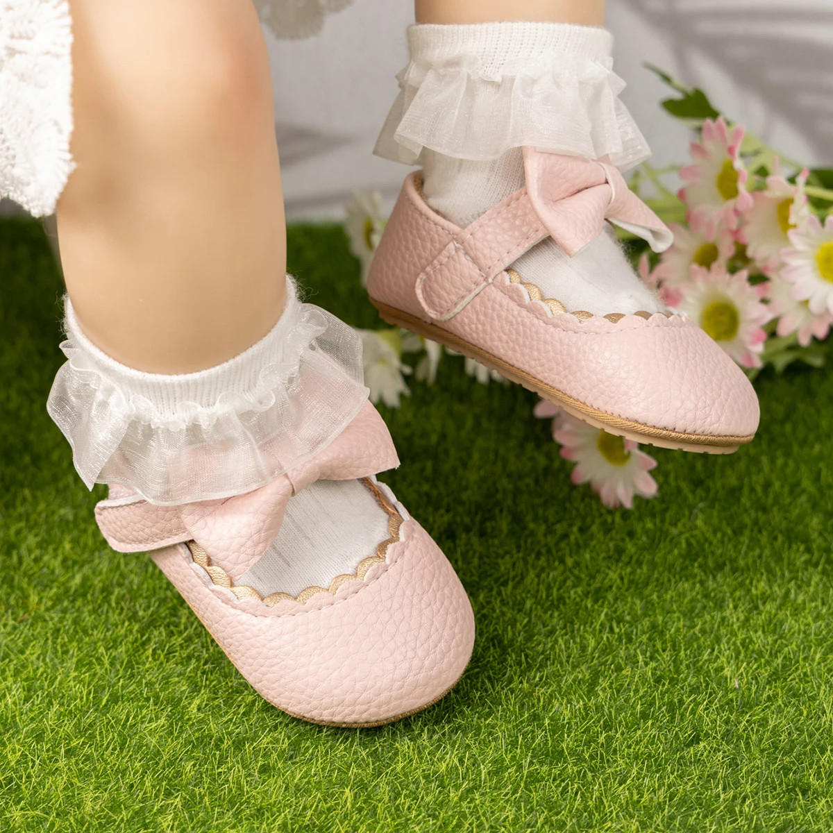 KIDSUN-zapatos de vestir de princesa para niña, calzado infantil de cuero Pu, planos, de goma, suaves, antideslizantes, Para Boda de recién nacido, primeros pasos, novedad