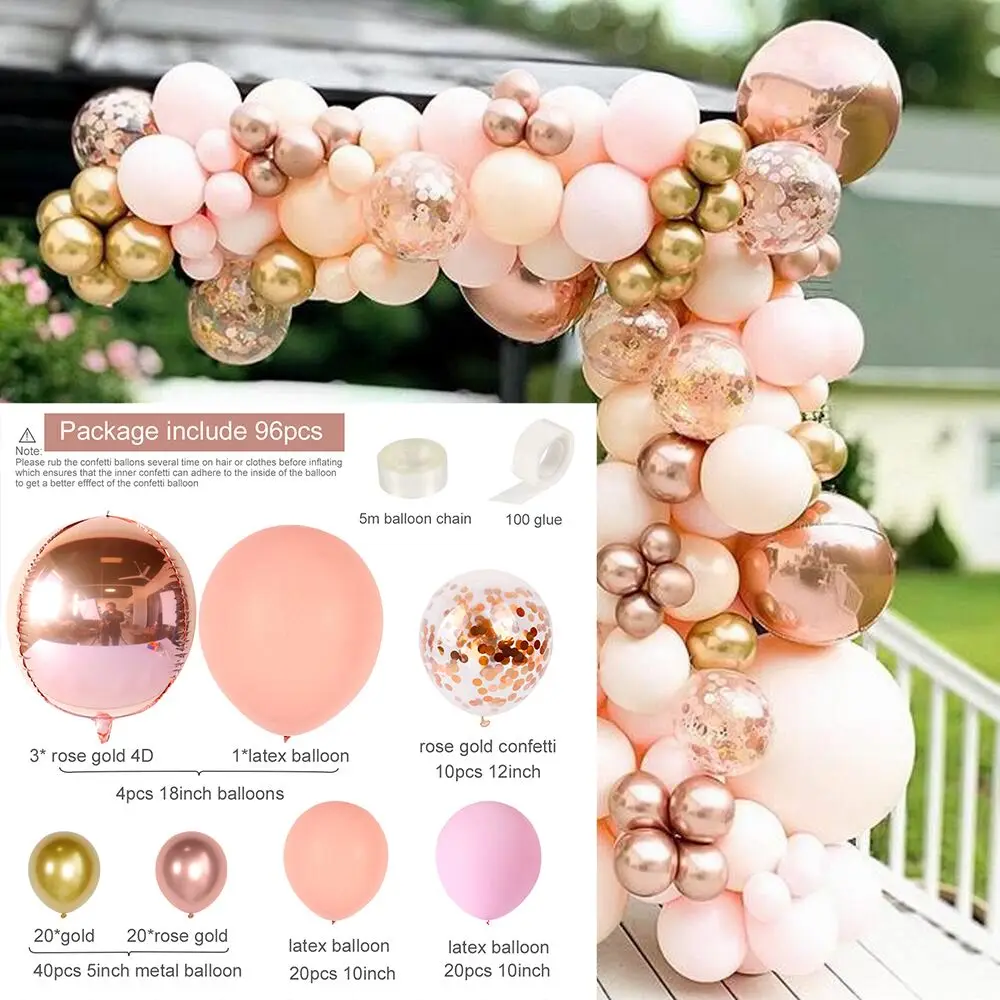 Comprar Kit de arco de guirnalda de Globos de Oro rosa, decoración de fiesta de cumpleaños de boda, globo de 1er cumpleaños para niños, globo de látex de confeti para niña