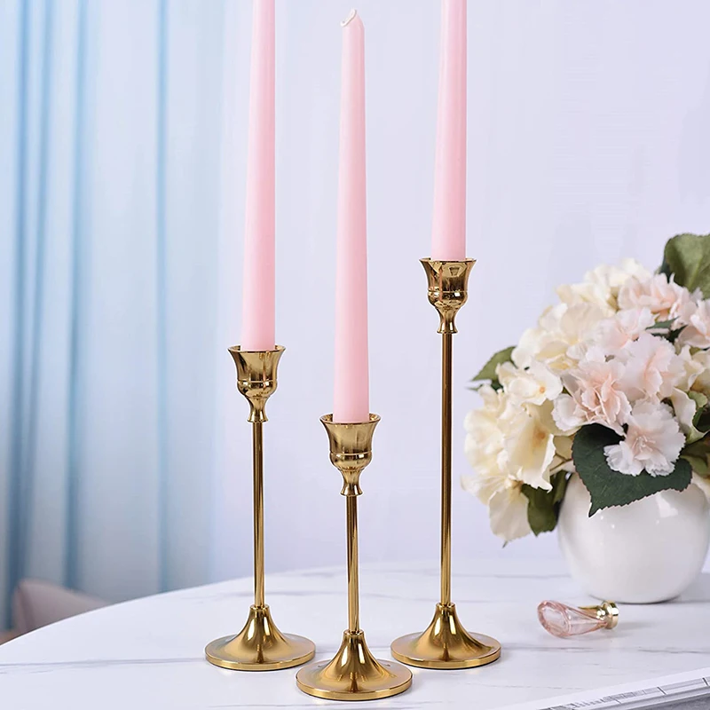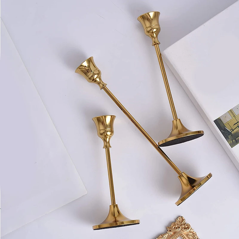 Bonitos candelabros, bien empaquetados, incluso se pueden usar como regalo. Tienen un recubrimiento suave en la base que protege la mesa de rayones. Uno de los tres tambalea un poco, pero no de manera crítica.