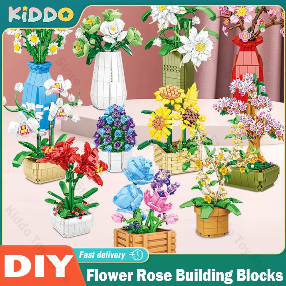 Comprar Kit de construcción de ramo de rosas y flores, bloques de construcción de colección botánica, ladrillos, escritorio, decoración del hogar, regalos de navidad