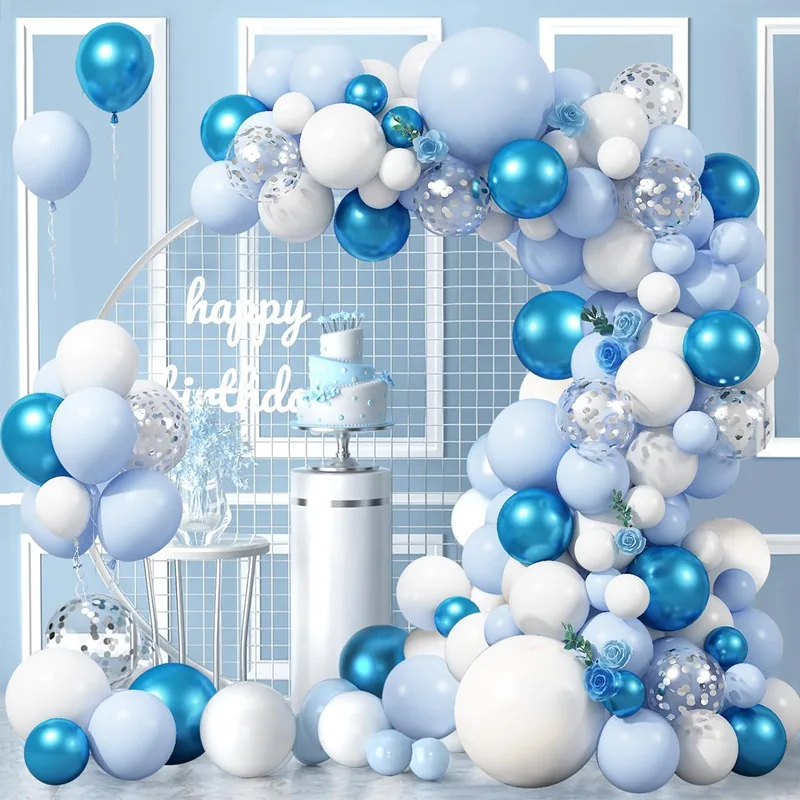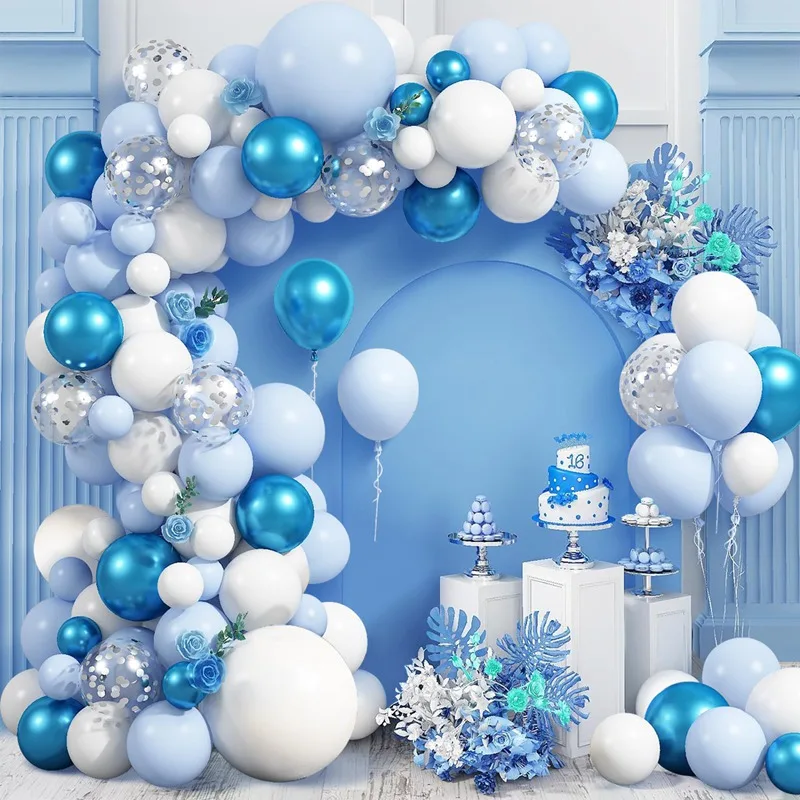 Comprar Kit de guirnalda de arco de globos azules, arena, blanco, metálico, dorado, polvoriento, pizarra, niebla, azul bebé, globos para despedida de soltera