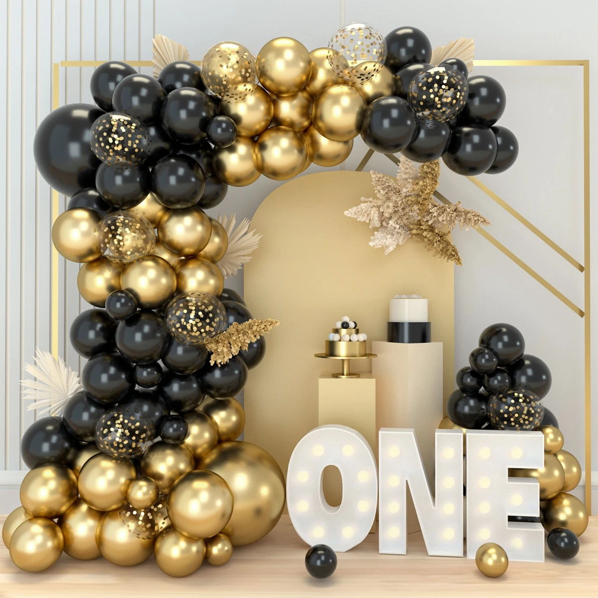 Kit de guirnalda de arco de globos negros y dorados, 79 piezas, globos dorados y negros con tira de cinta de 16 pies y pegamento de puntos para graduación y cumpleaños