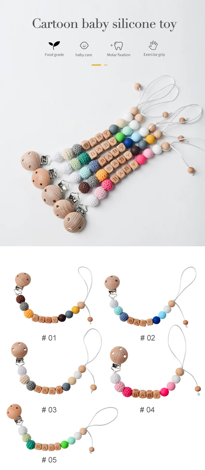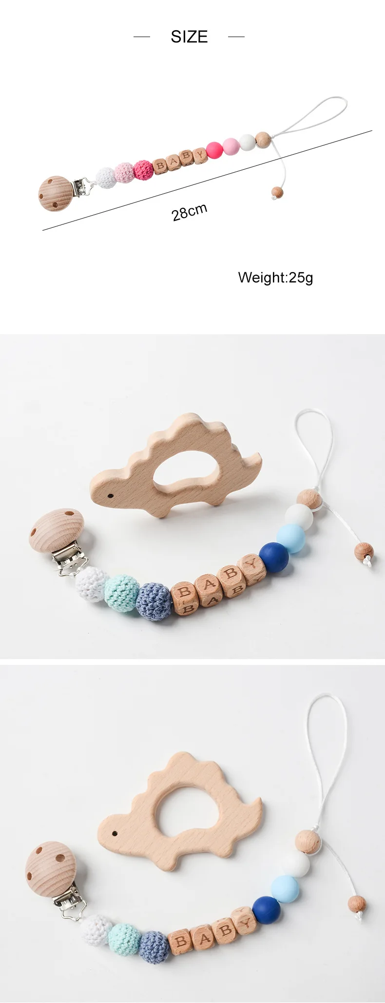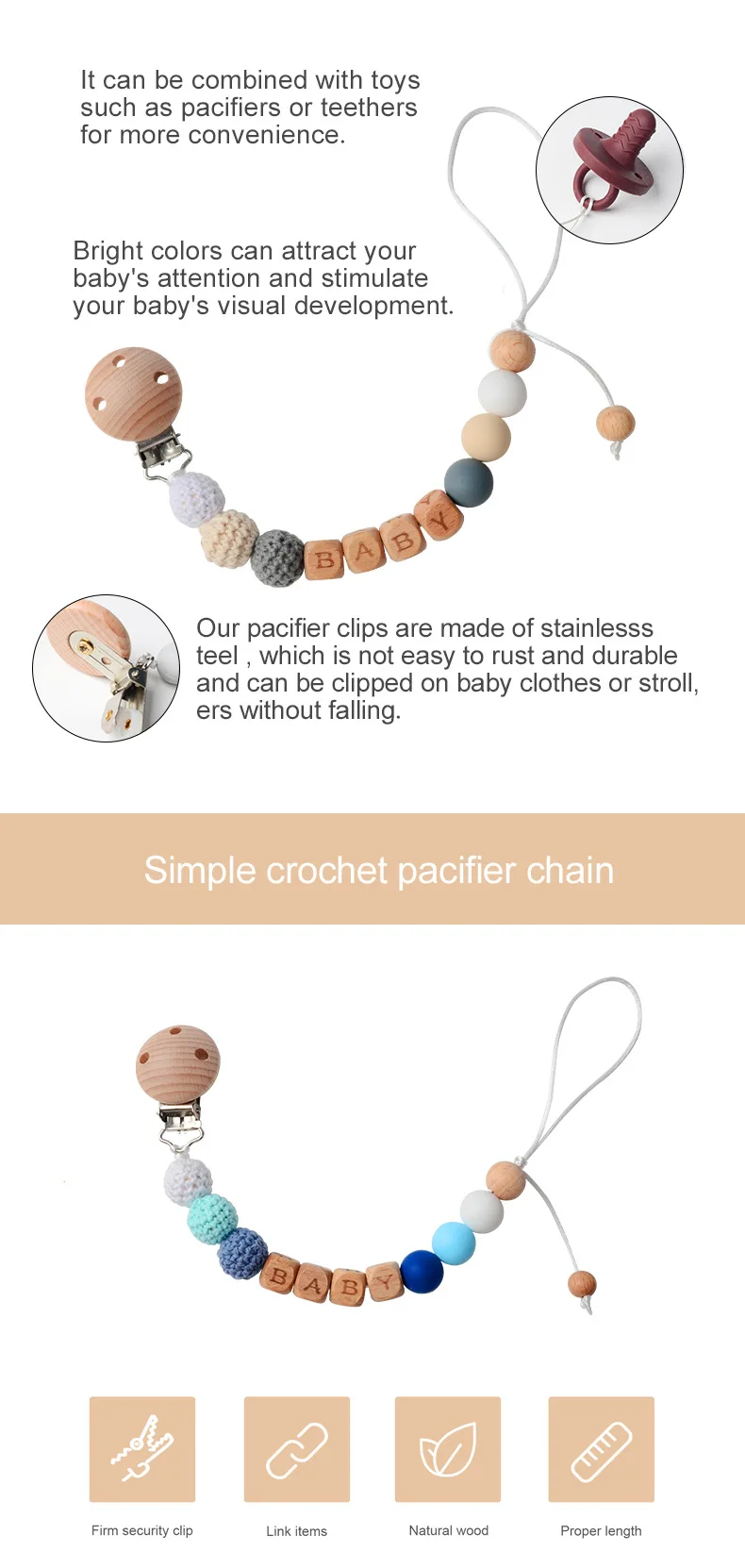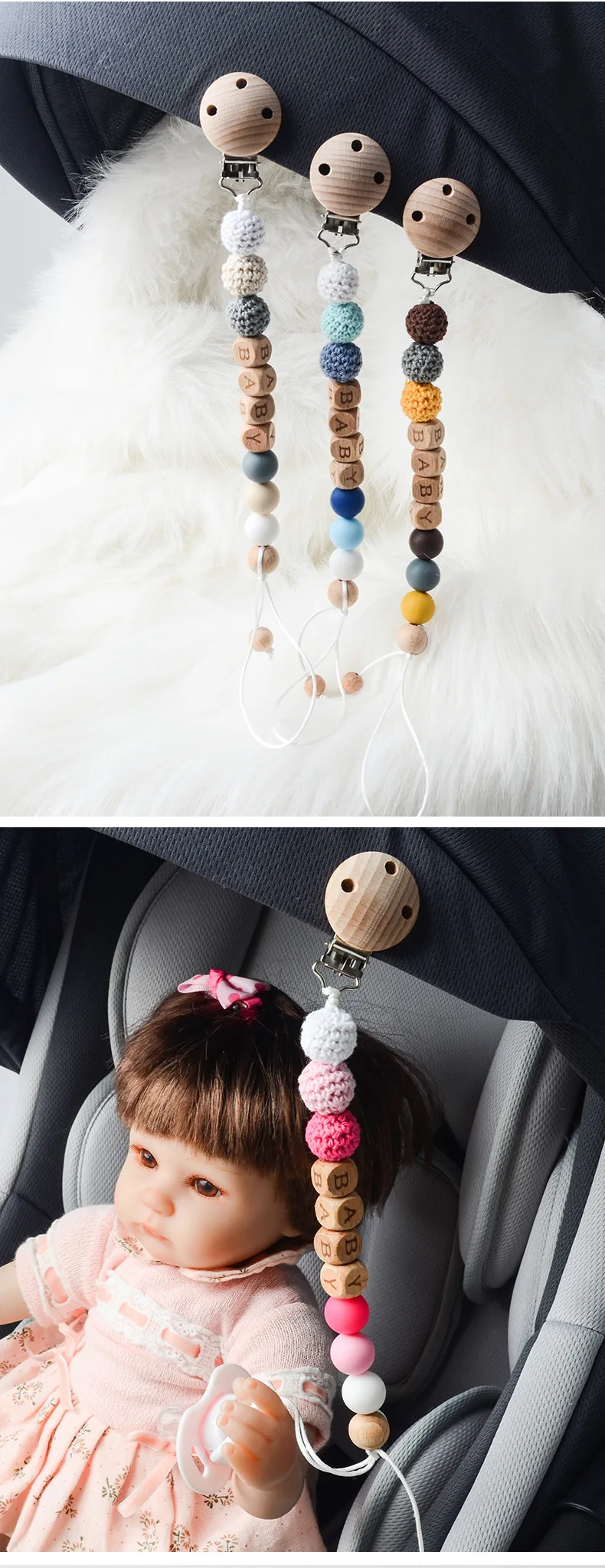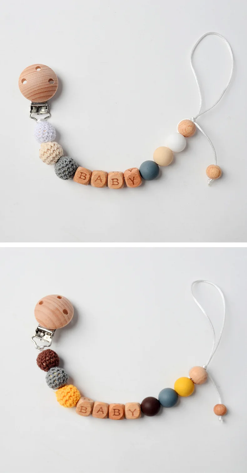Kit informal de ganchillo para dentición de bebé, mordedor de madera de haya con Clip antipérdida, sonajero de hilo de algodón Natural, juego DIY para recién nacido