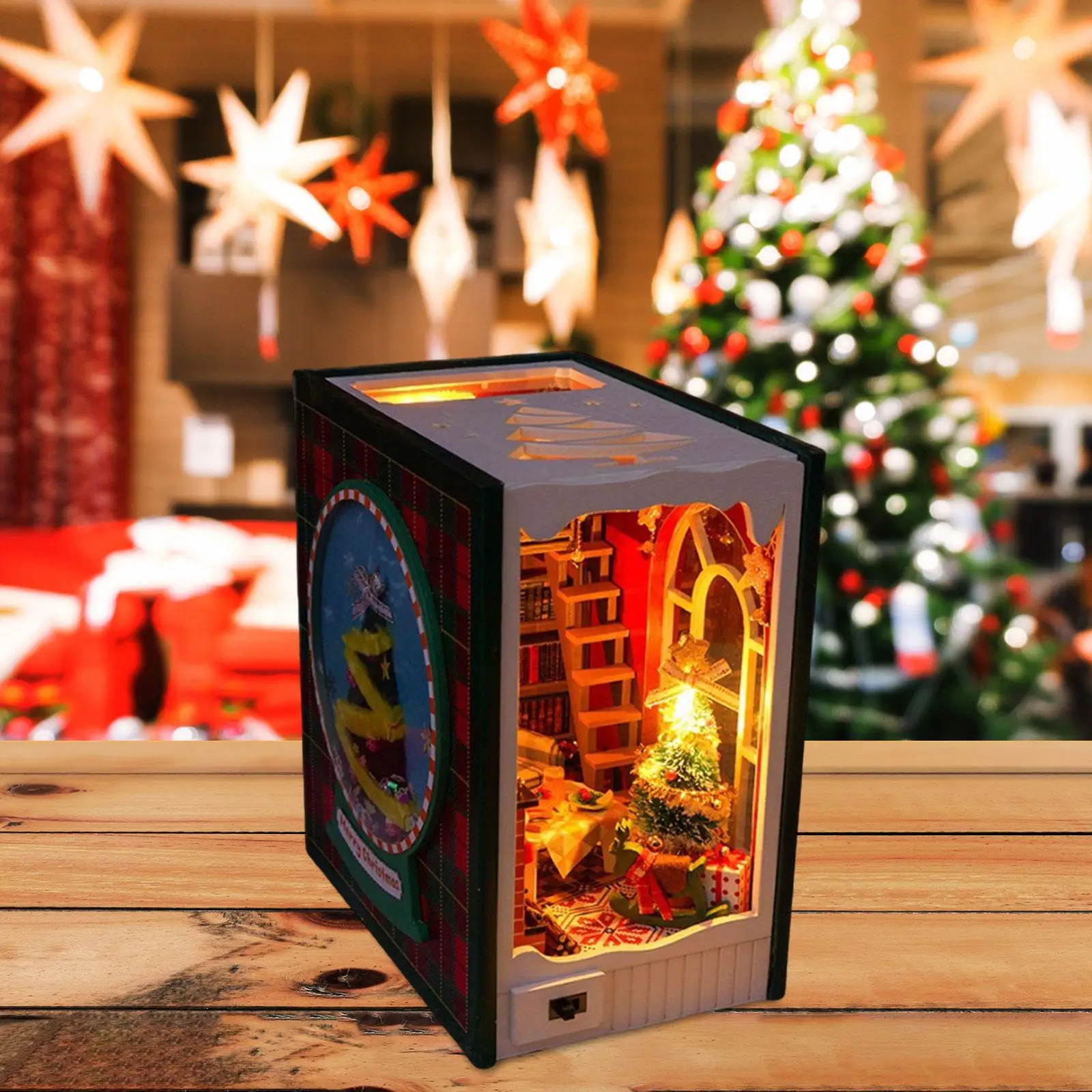 【Haga su propia casa】: el kit de librería de Navidad DIY debe hacerlo usted mismo.Una vez completados, se pueden usar como objetos de colección y decoración del hogar. Puedes poner tus accesorios favoritos en él para crear una escena.