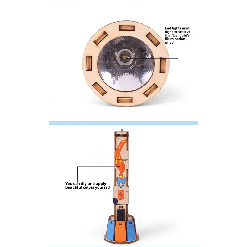 Kit de linterna de madera DIY, experimento educativo de ciencia física, proyecto electrónico ensamblado a mano para niños, juguete de regalo creativo