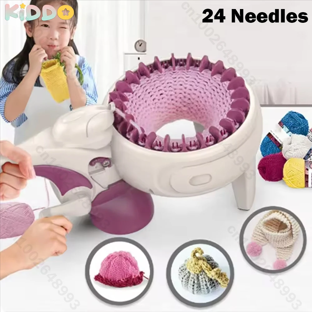 Comprar Kit de máquina de tejer a mano con 24 agujas, bolsa para niñas, bufanda de punto DIY, sombrero, calcetín, tejido Manual con manivela, máquina de tejer para el hogar