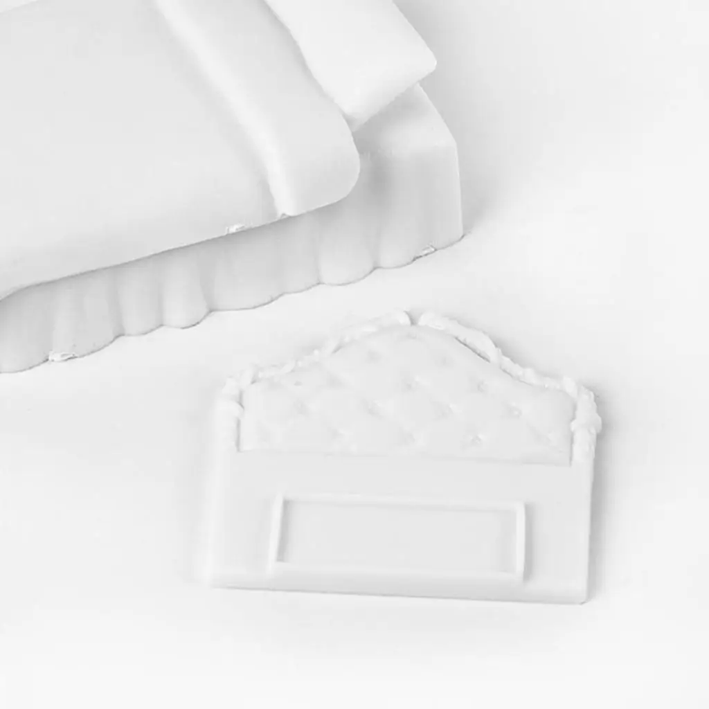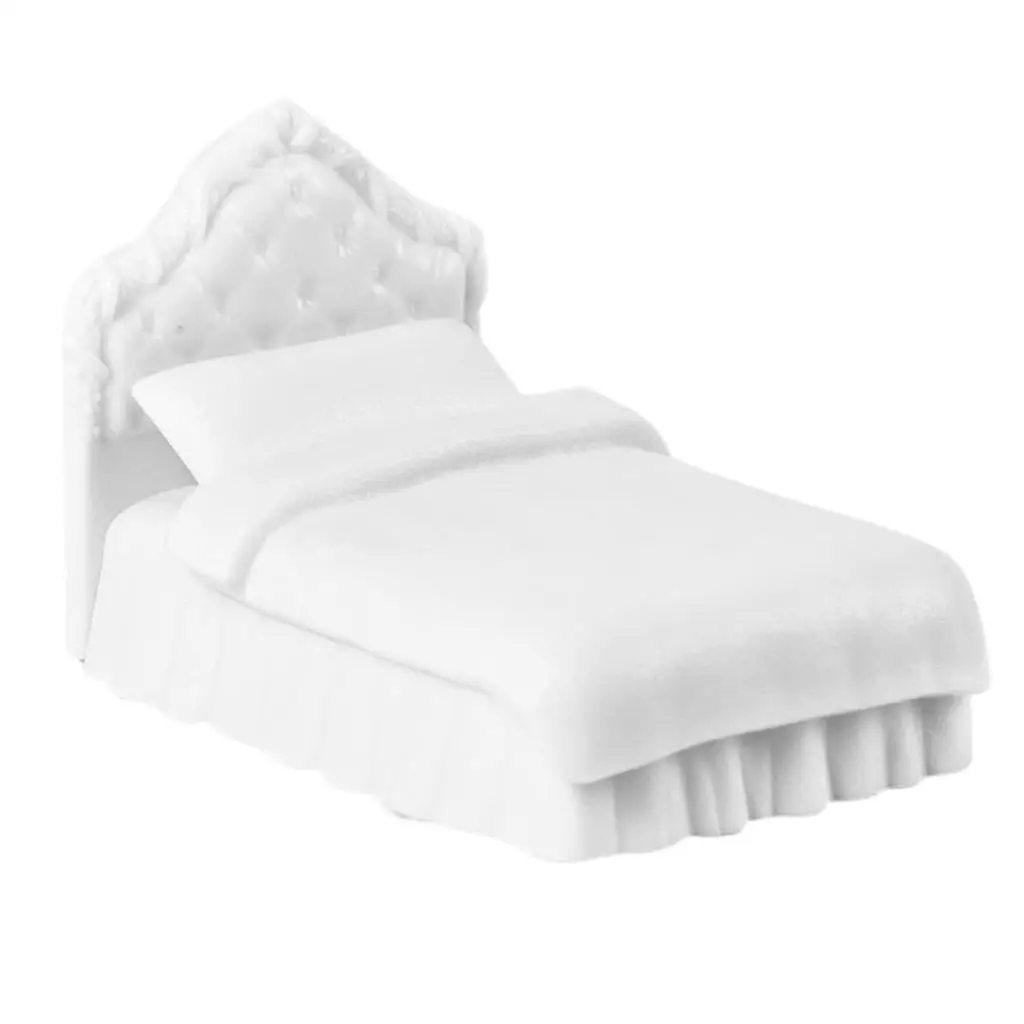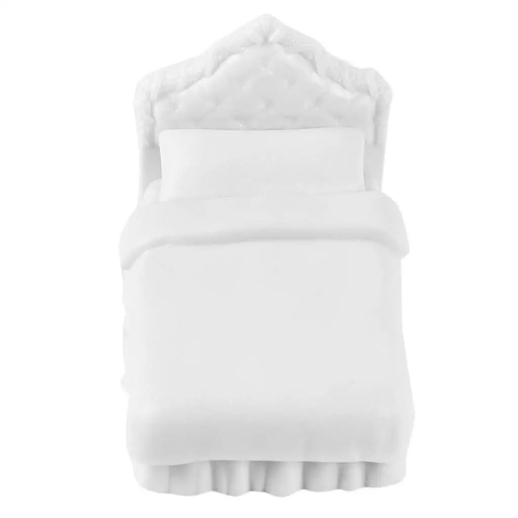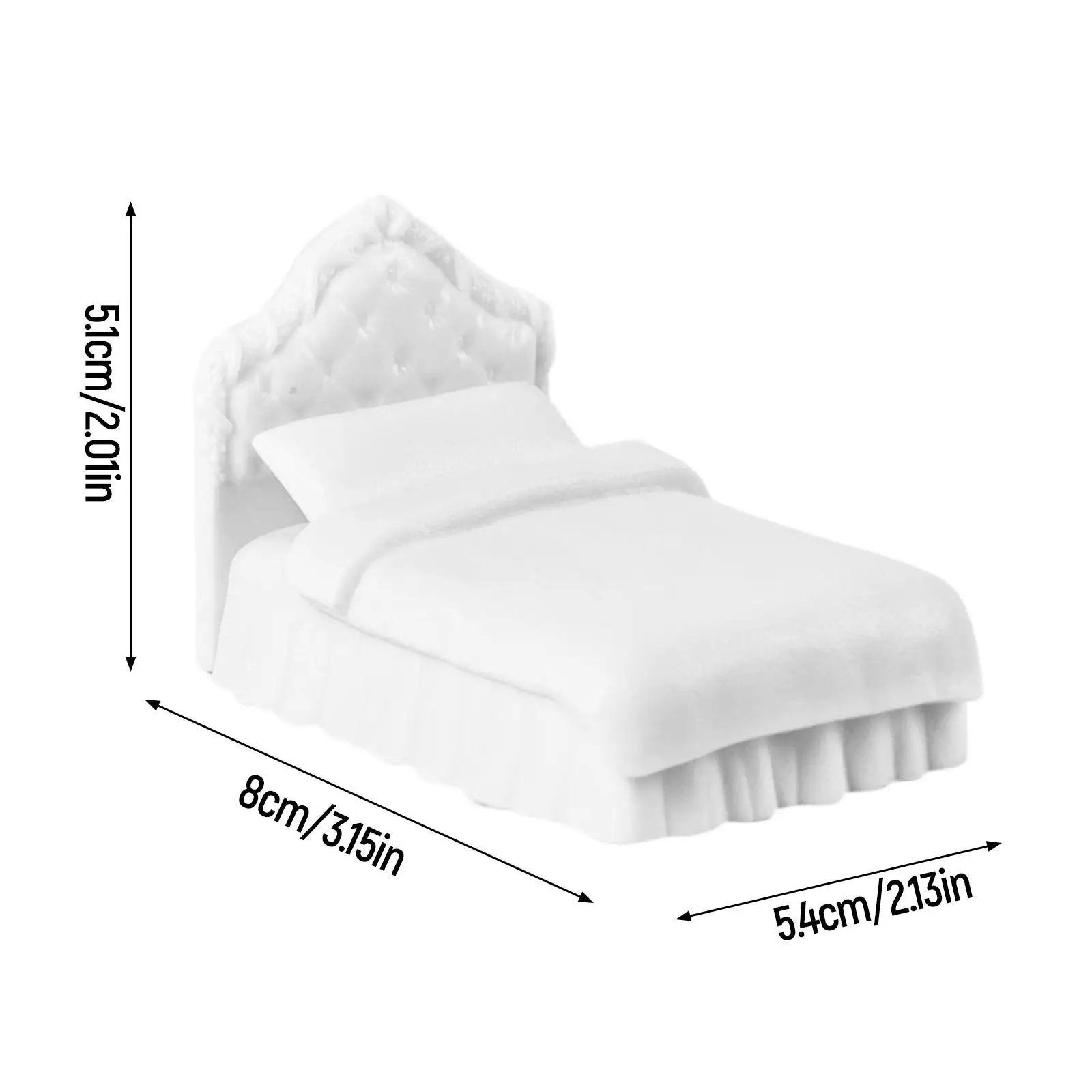 Cama blanca modelo en miniatura para modelos de mesa de arena, accesorios DIY.