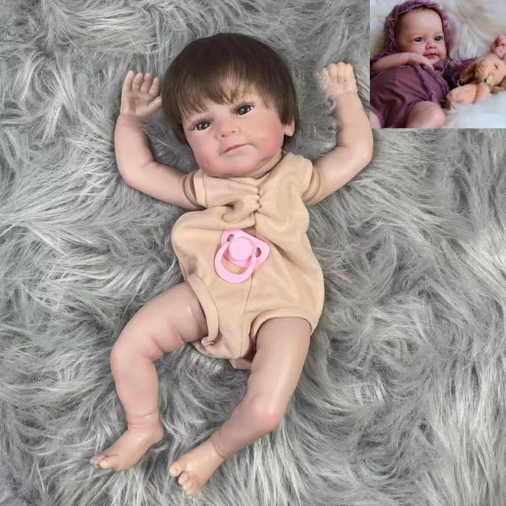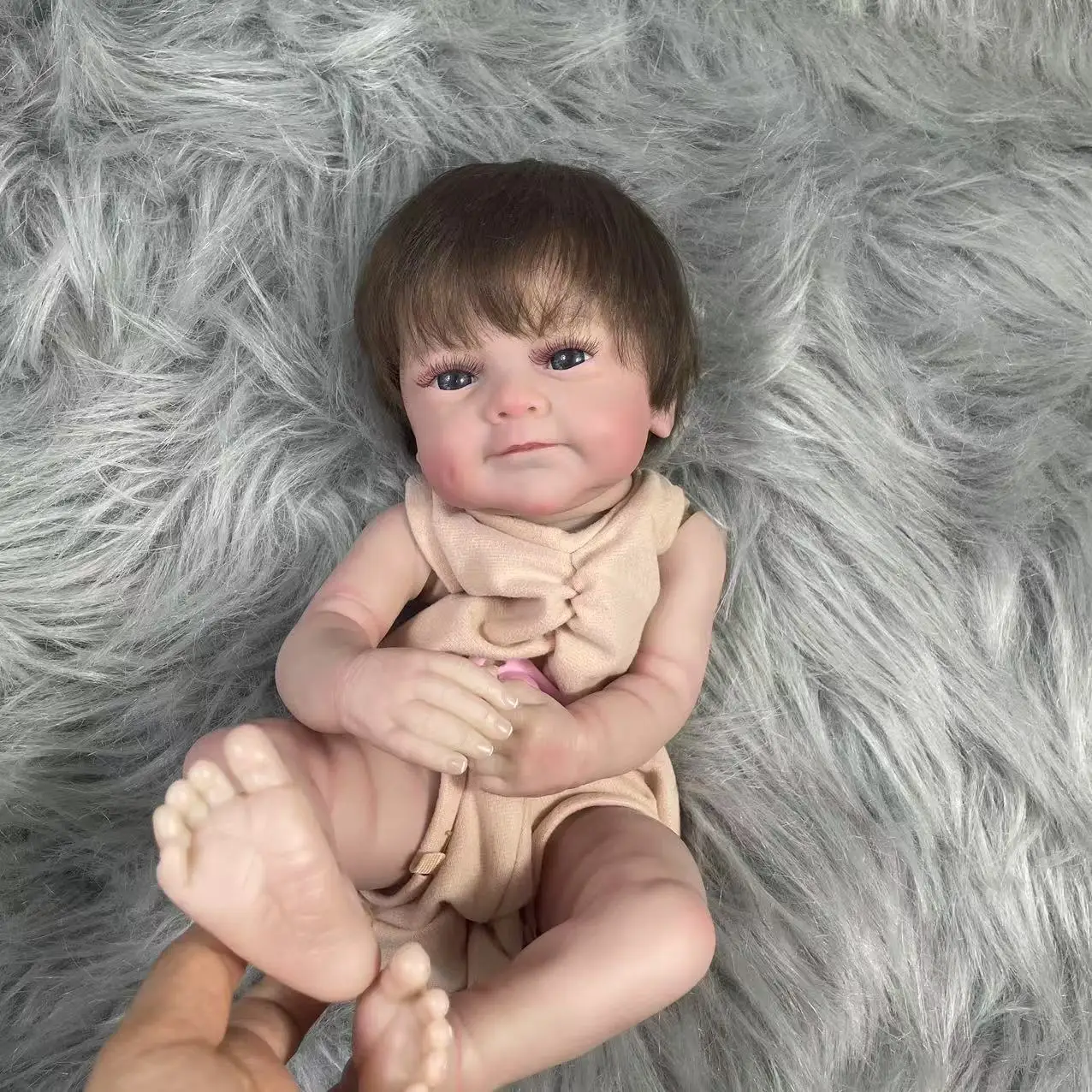 Comprar Kit de muñeco realista de vinilo pintado de 18 pulgadas Sanya con trasplante de cabello ojos azules brillantes piel pintada en 3D venas visibles molde hecho a mano