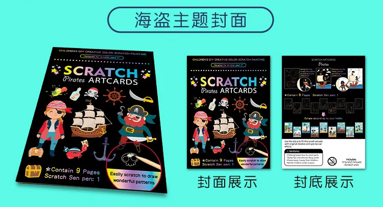 -Nombre del producto: 9 Uds. Magic Rainbow Color Scratch Art Painting Paper Card Kit Cartoon Dinosaur Unicorn Drawing Board Kids DIY Educational Toys