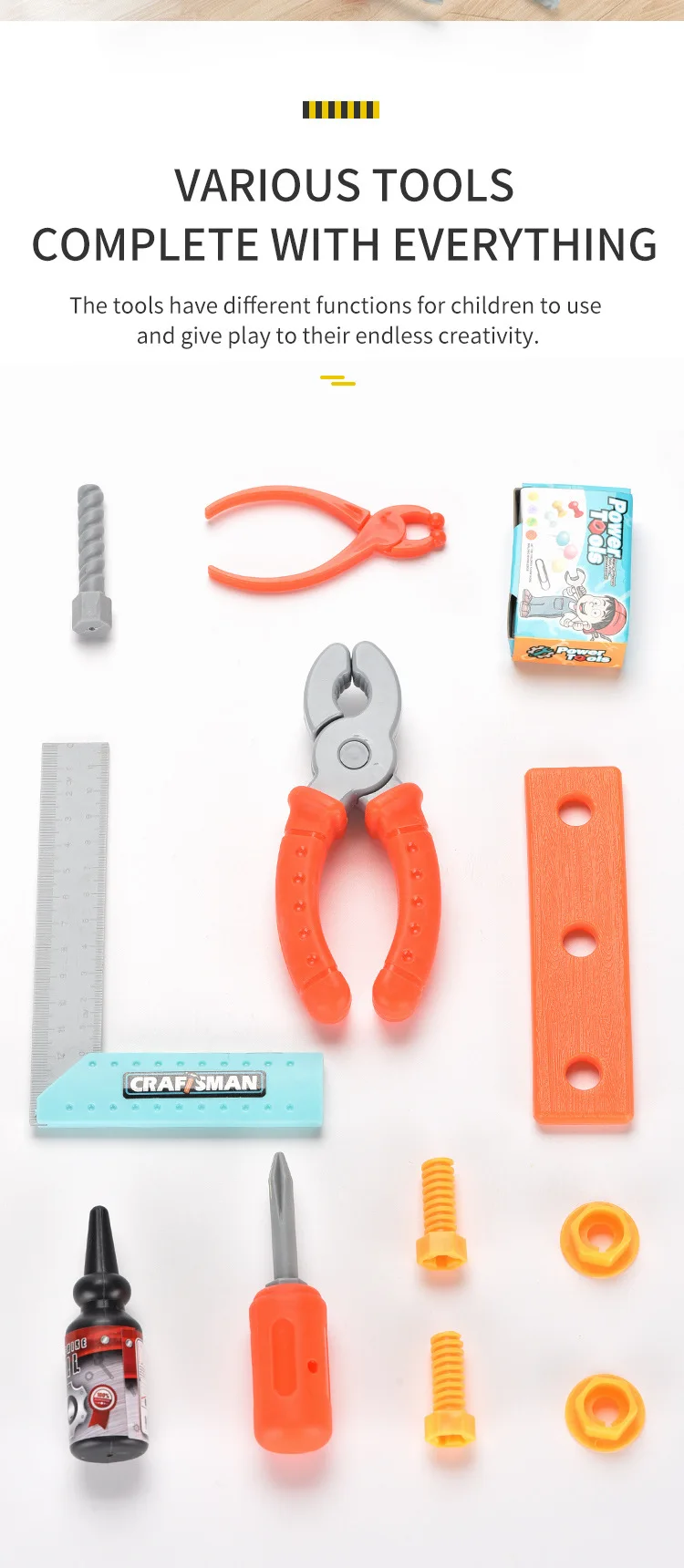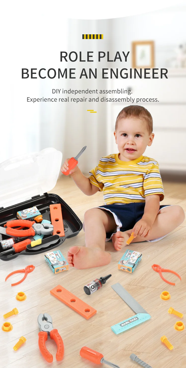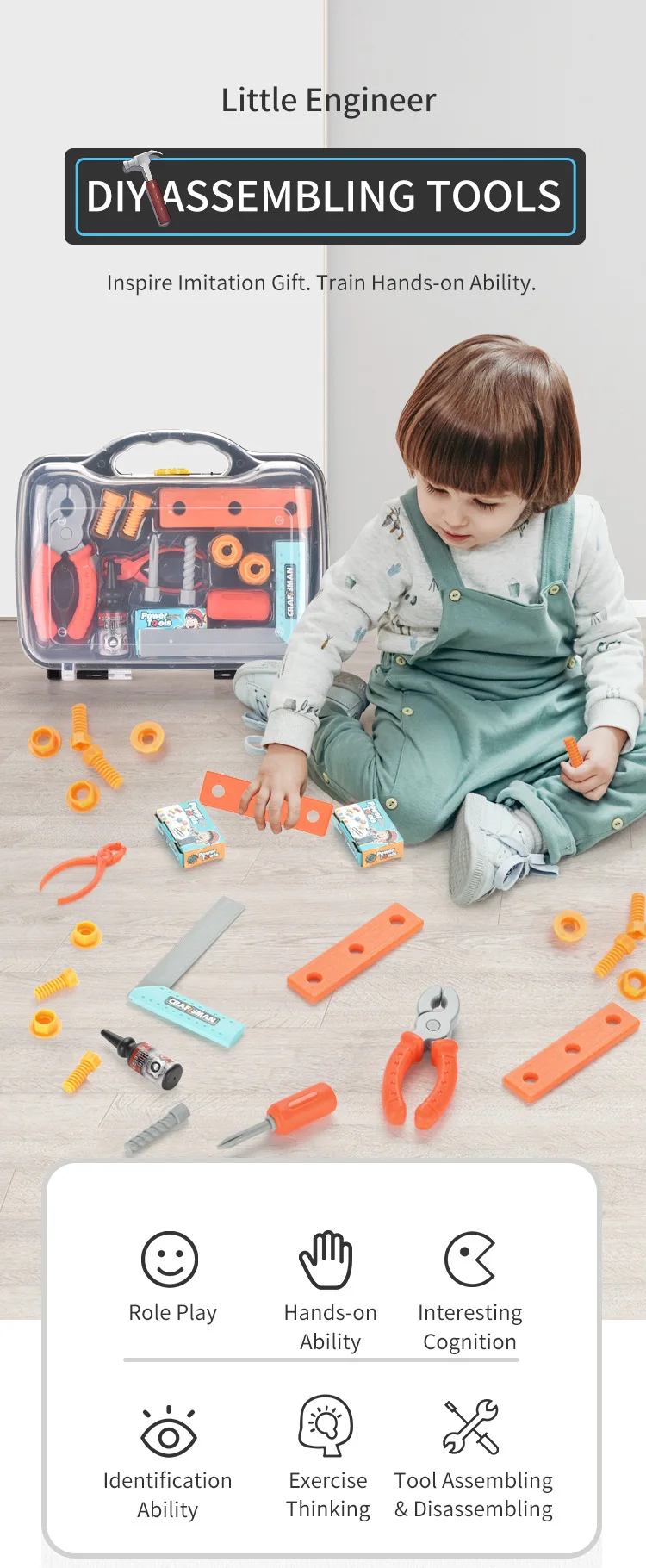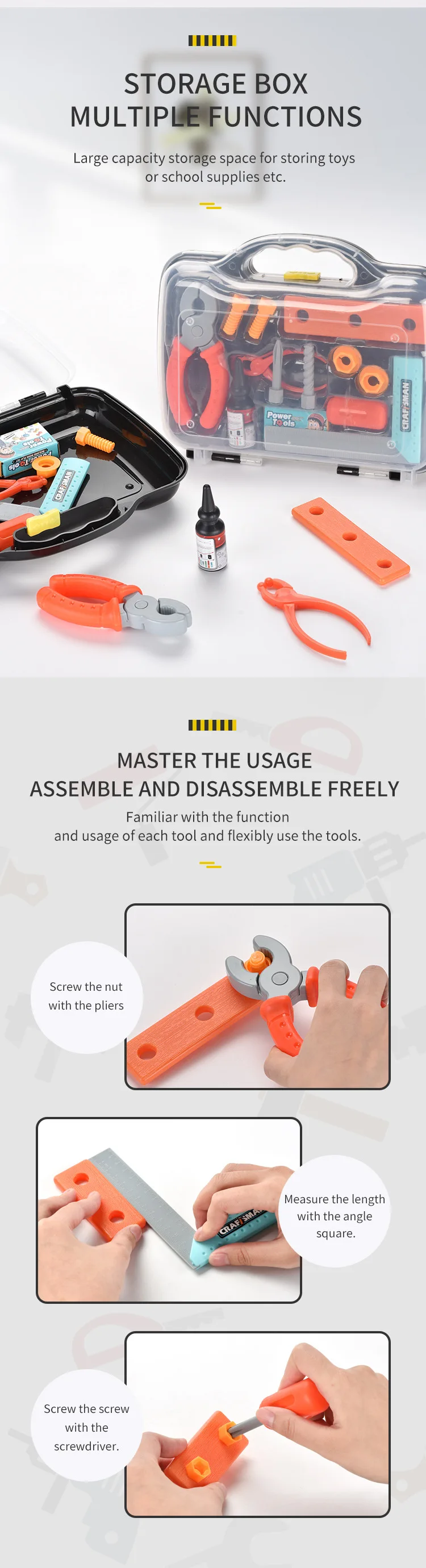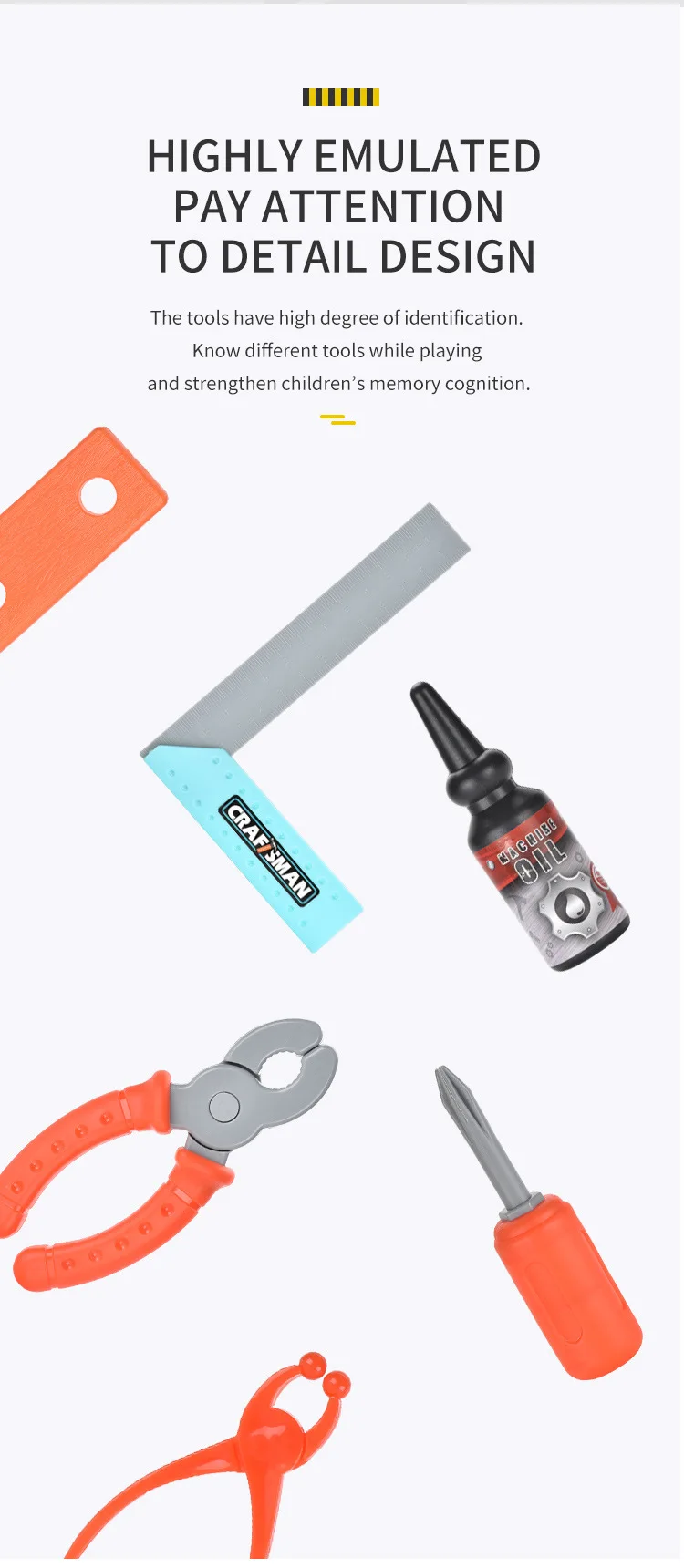 1. Todo es completamente funcional y realista. A los niños les encanta simular a su padre trabajando y fijándose en casa, lo cual es muy útil para el desarrollo intelectual, la coordinación ojo-mano.