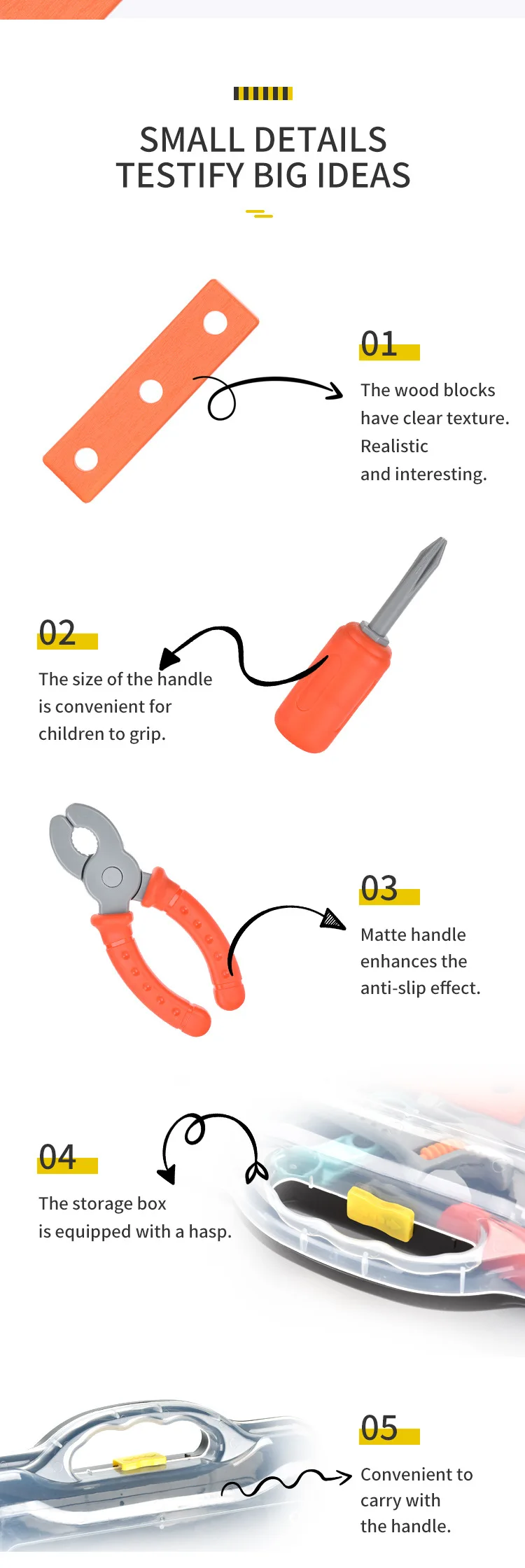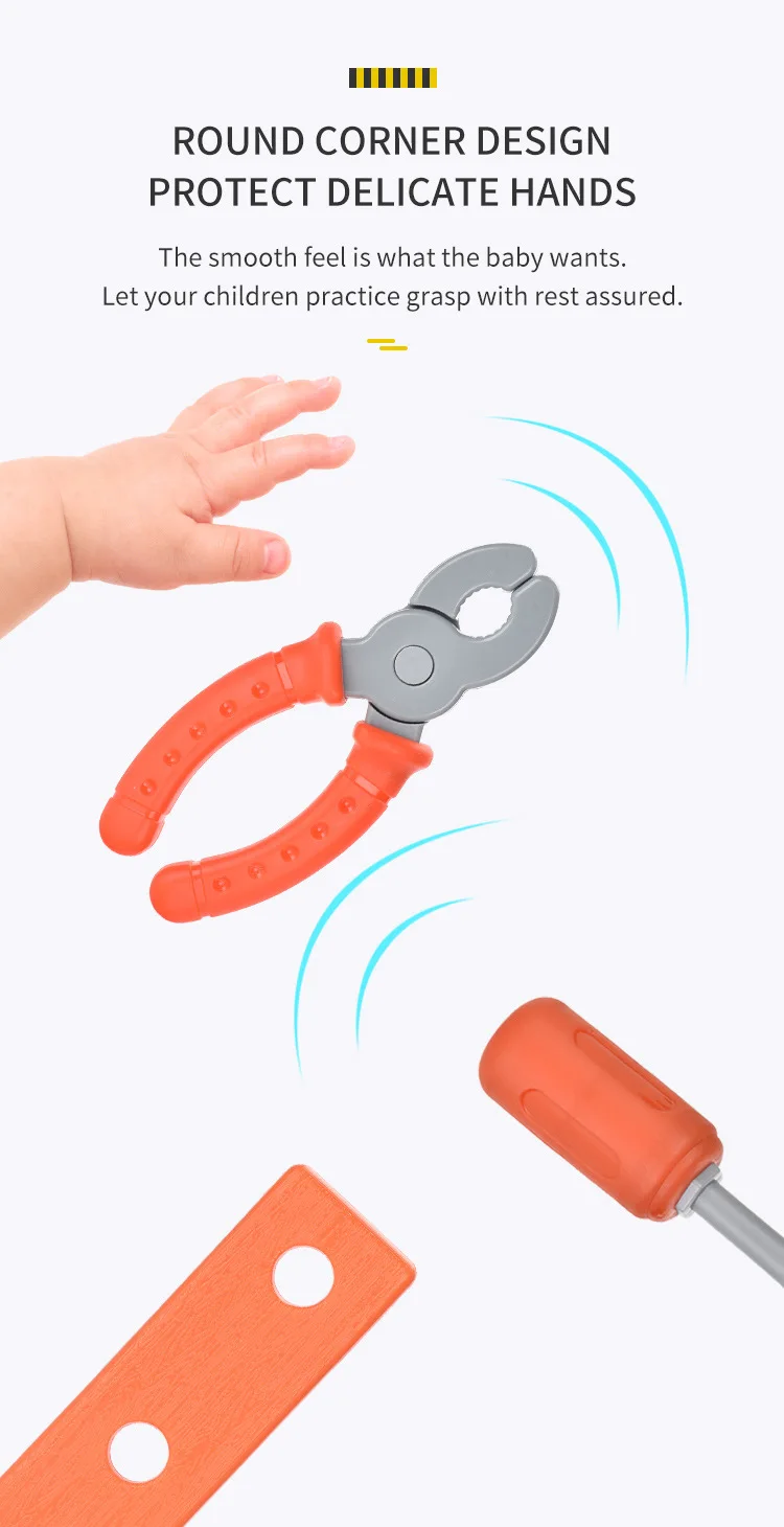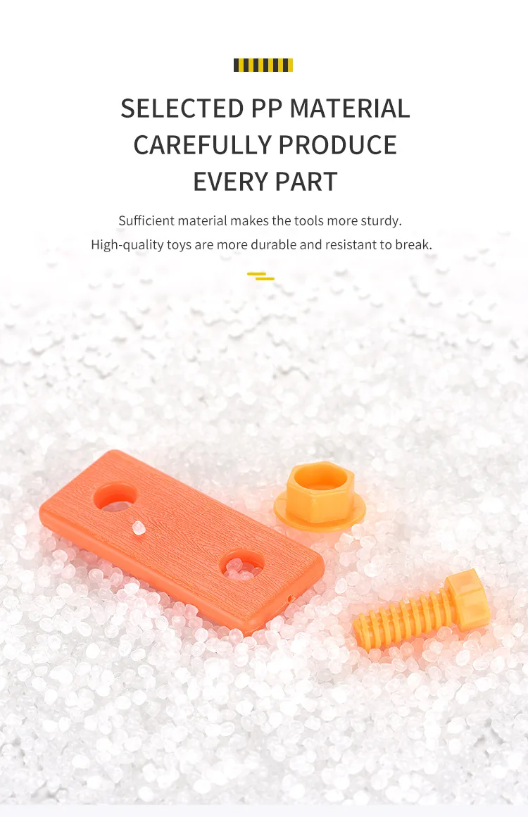 4. Piezas hechas de lo más resistente y seguro.Las herramientas de juguete serán resistentes a que su hijo las arroje, se caiga o se golpee mientras juega y hace fingir.