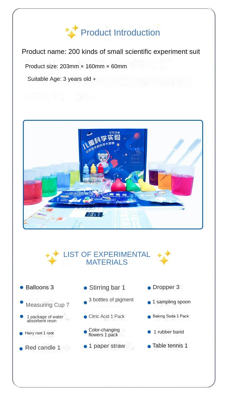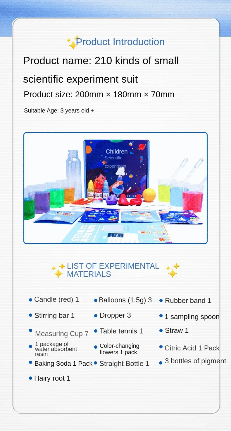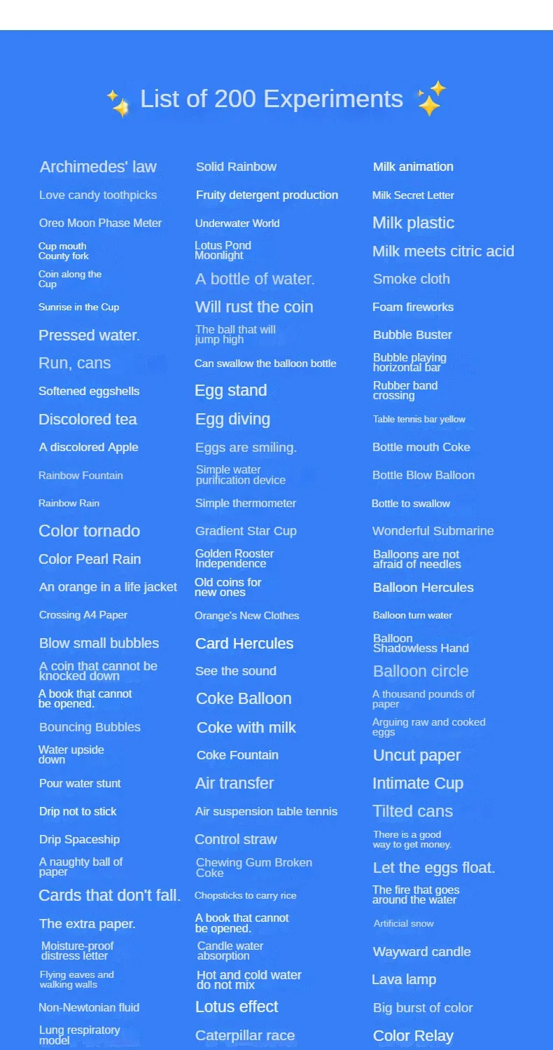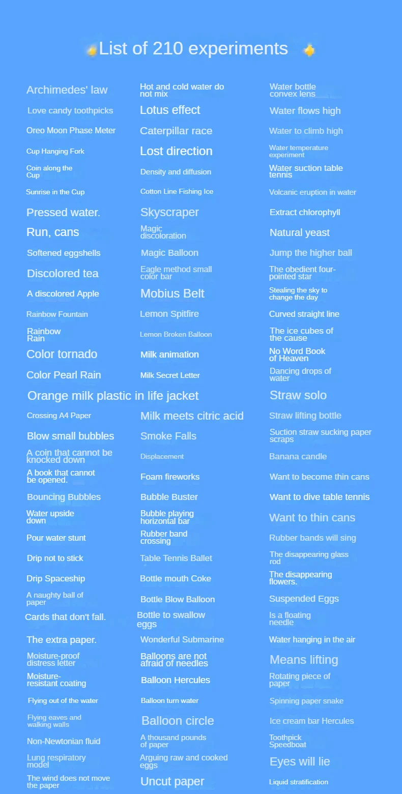 Muy lejos de la descripción..... Se enumeran 210 experimentos y hay una imagen de más artículos. Llegó con algunos artículos como se muestra en la imagen. Qué lástima... un poco decepcionante Estaremos felices de recibir una compensación.