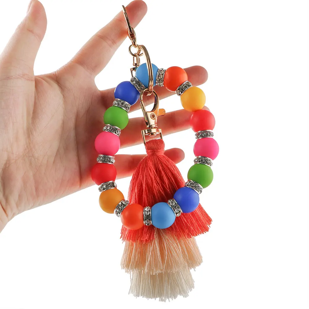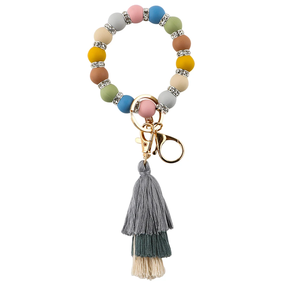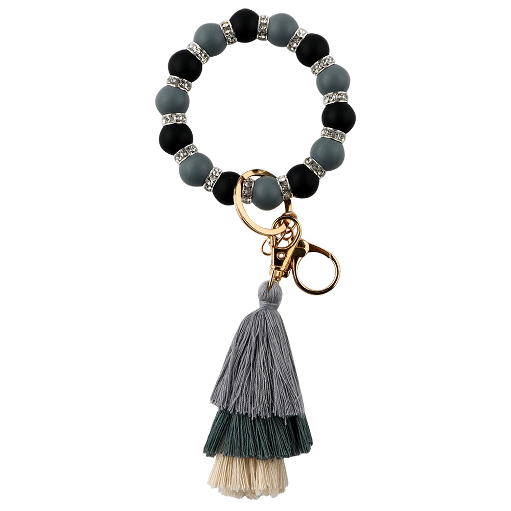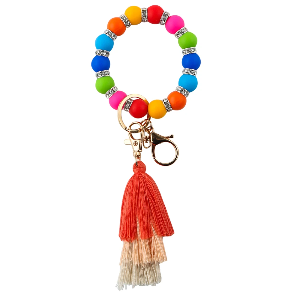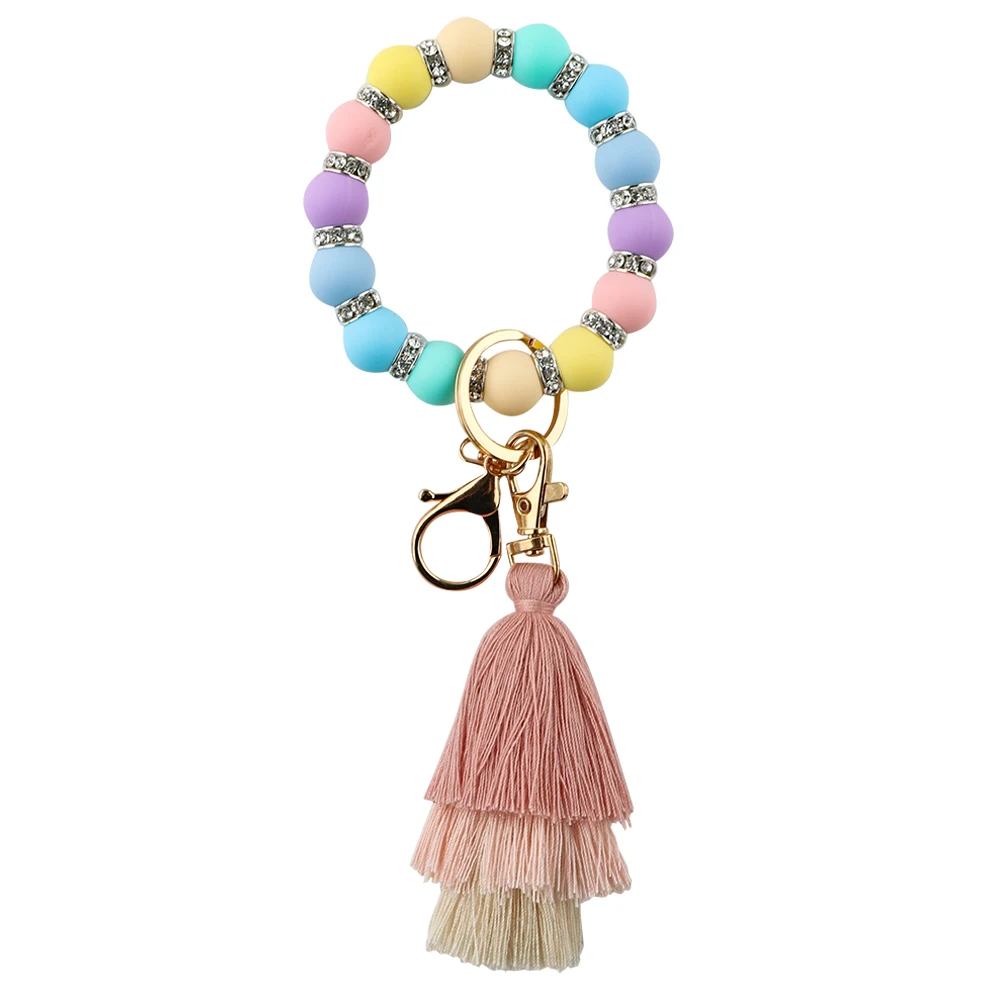 Kivoct-Pulsera con cuentas de silicona para hombre y mujer, llavero de moda con borlas, para teléfono, coche, mochila, colgante, regalos de joyería