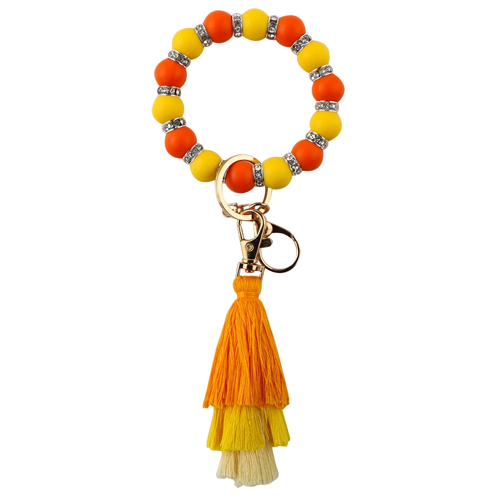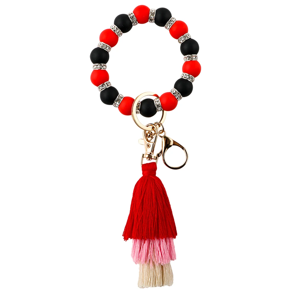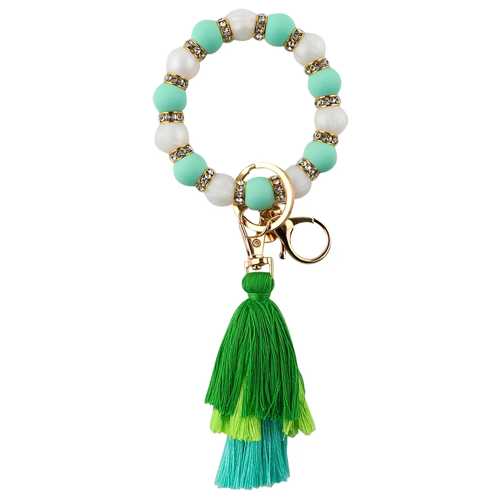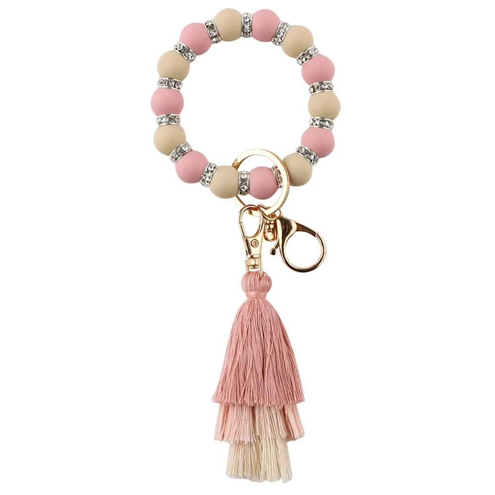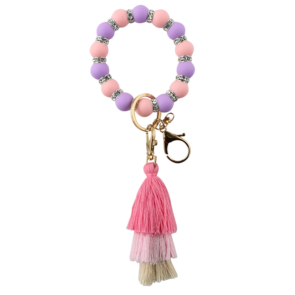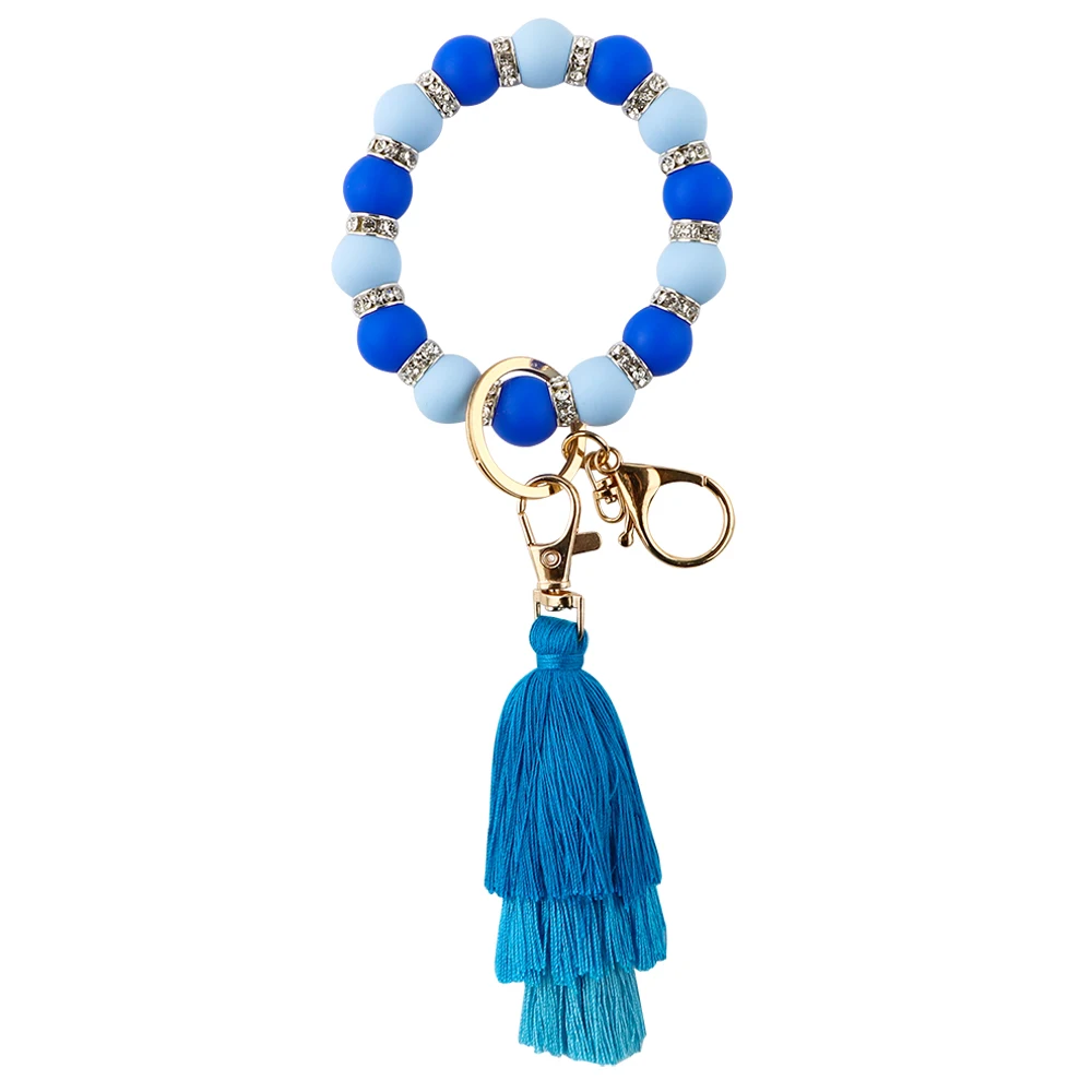Kivoct-Pulsera con cuentas de silicona para hombre y mujer, llavero de moda con borlas, para teléfono, coche, mochila, colgante, regalos de joyería