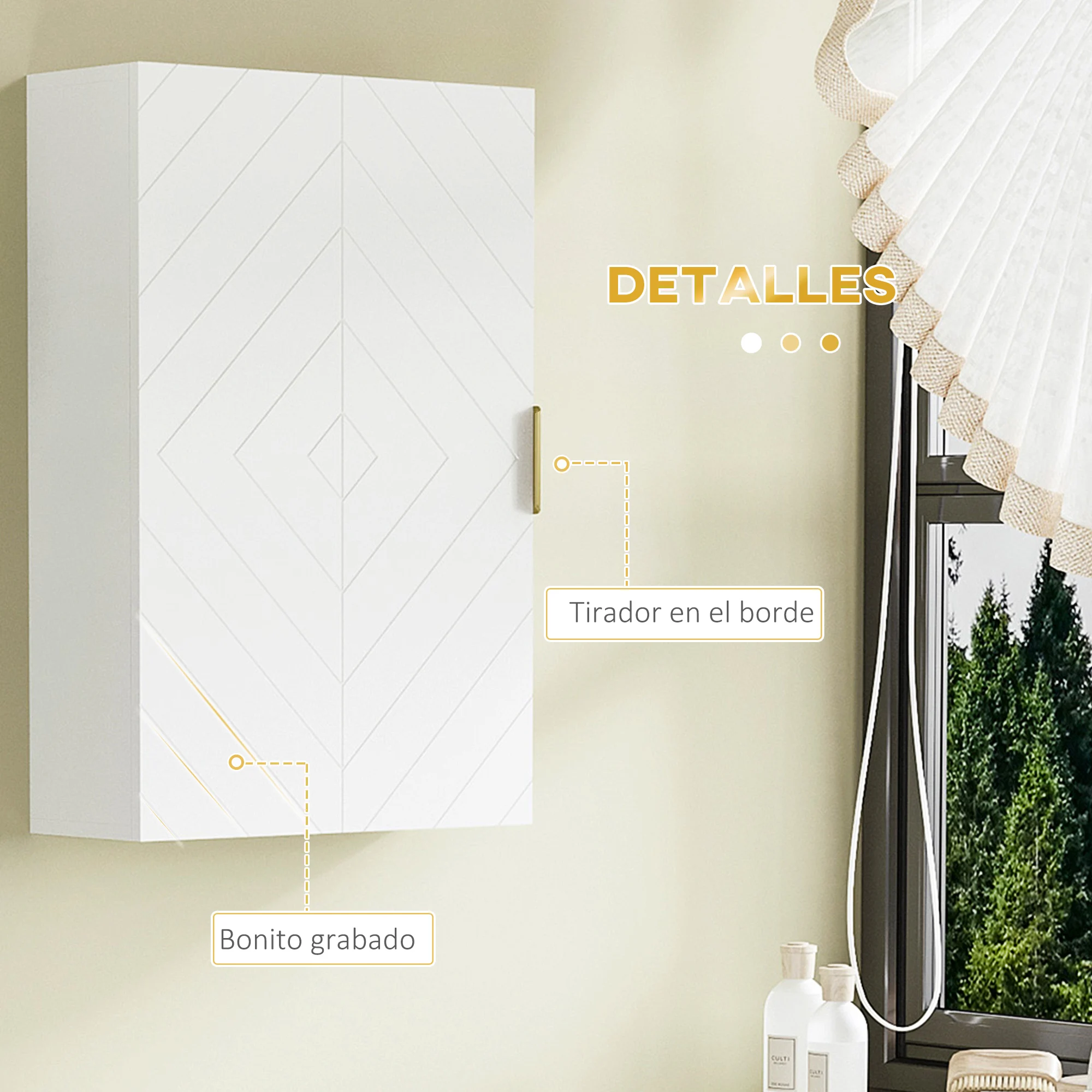 ● Armario con tres estantes, ideales para guardar y exponer los artículos esenciales del día a día