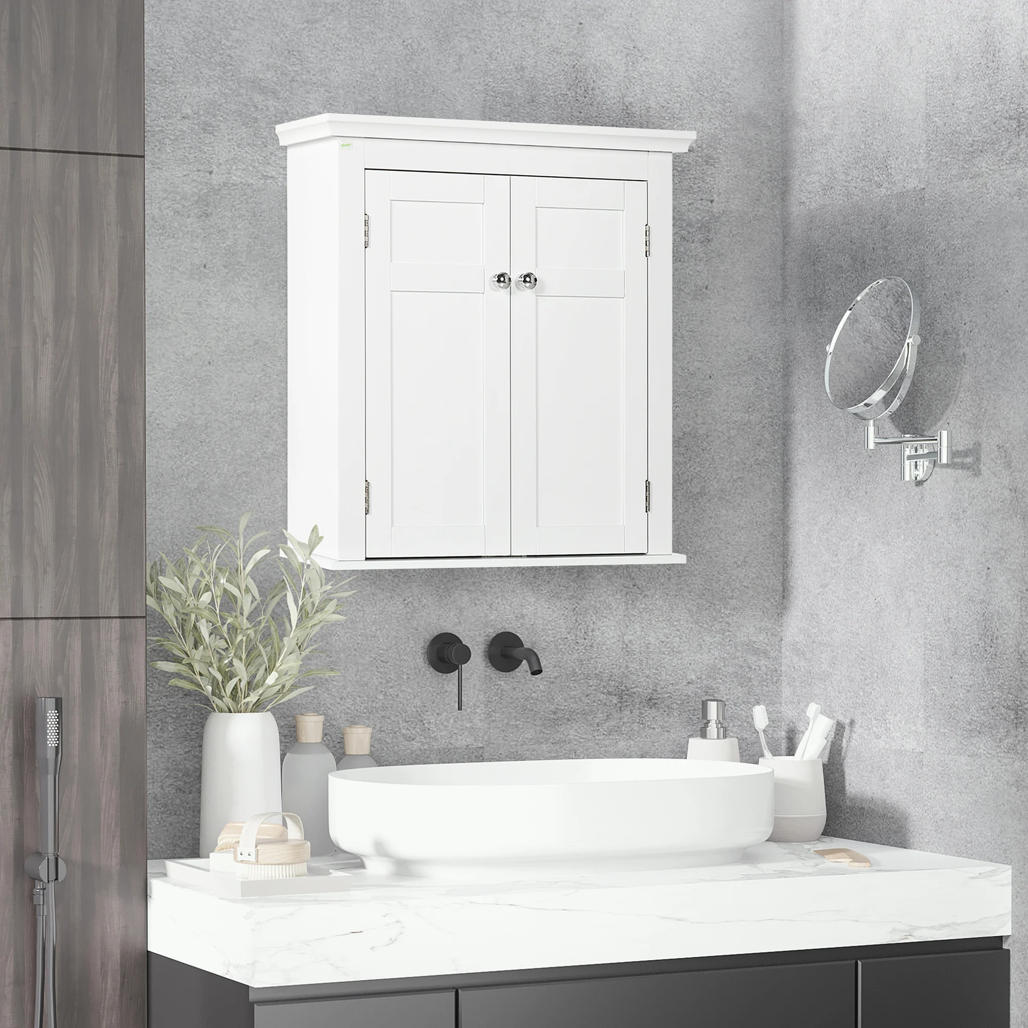Organiza y almacena todos tus esenciales de baño con este armario de pared de kleankin. Las puertas dobles protegen los artículos del polvo, manteniéndolos limpios y accesibles, mientras que los estantes ajustables en el interior ofrecen flexibilidad para adaptar el espacio a tus necesidades. Además, su diseño montado en la pared ahorra espacio, siendo ideal para ambientes con espacio limitado.