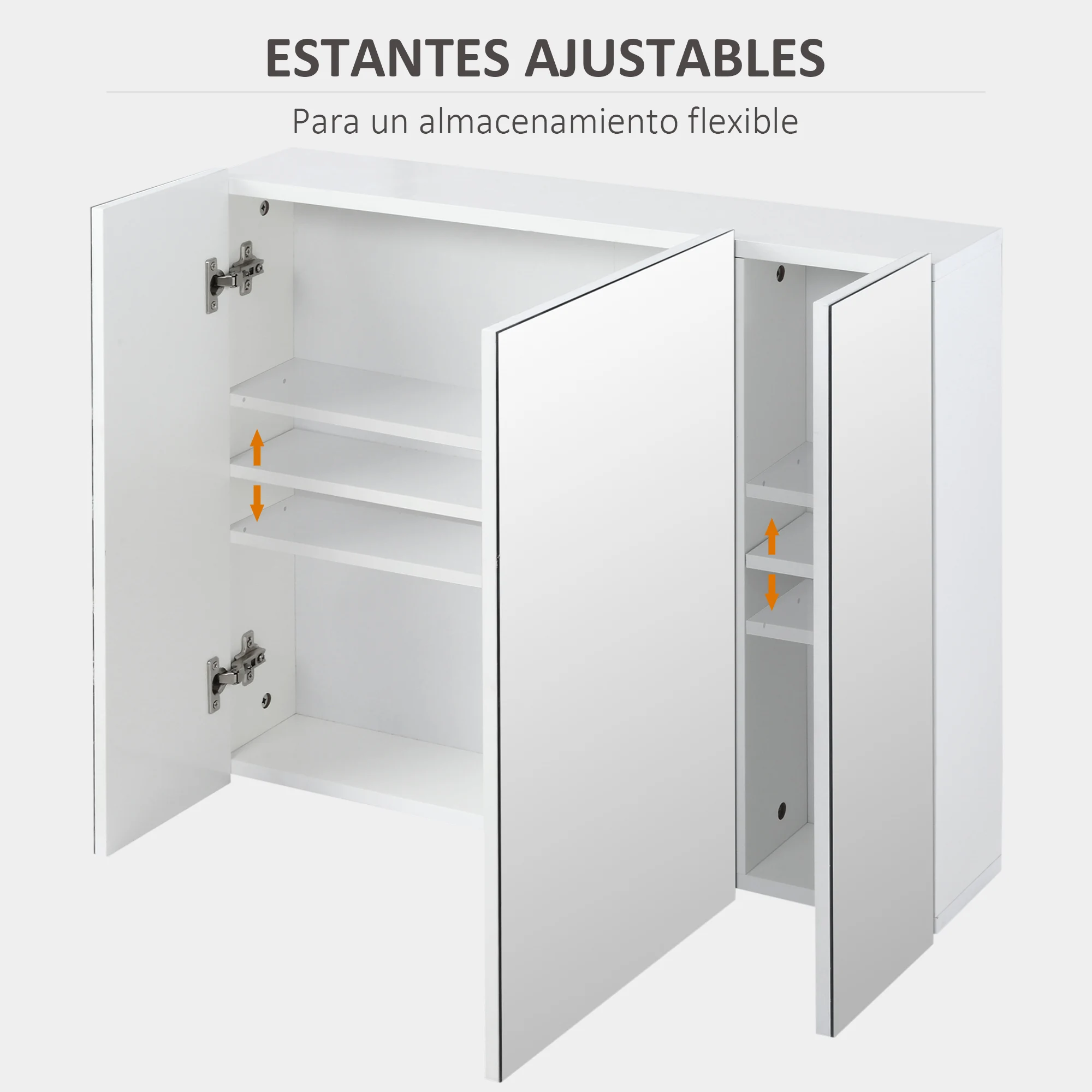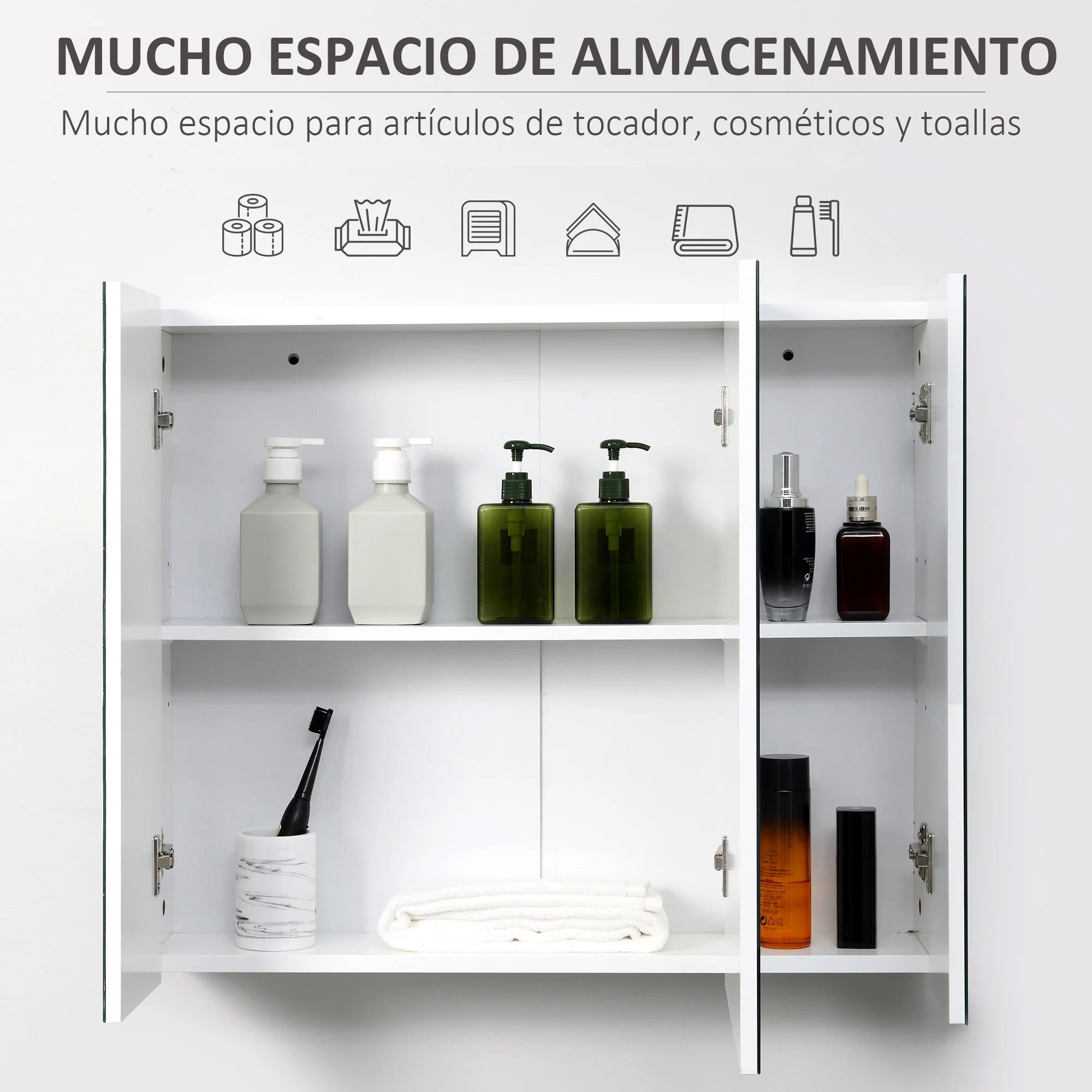 Este camerino de baño con armario y puertas de espejo de kleankin es perfecto para mantener todos tus artículos en orden. Fabricado en madera de melamina, es resistente y fácil de mantener. Las puertas de espejo facilitarán tus rutinas diarias de peinado, maquillaje, afeitado, etc. Compuesto por 2 armarios con estantes interiores, ofrece un amplio espacio para guardar tus artículos de tocador. Además, al ir montado en la pared, te permite aprovechar mejor el espacio de tu baño.