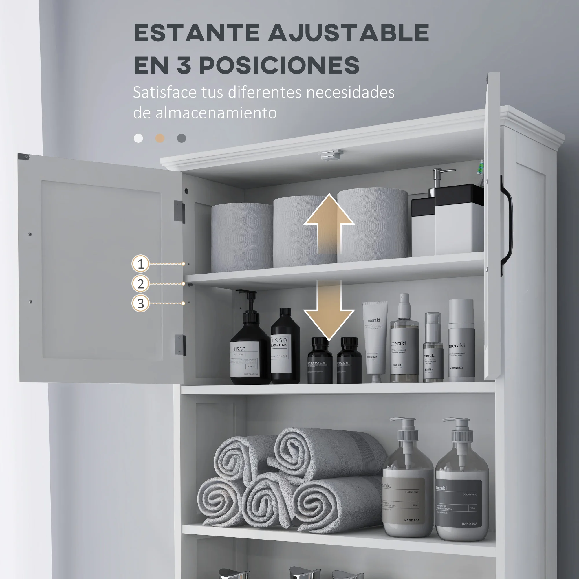 ● Armario sobre inodoro incluye dispositivo anti vuelco de seguridad para fijar a la pared