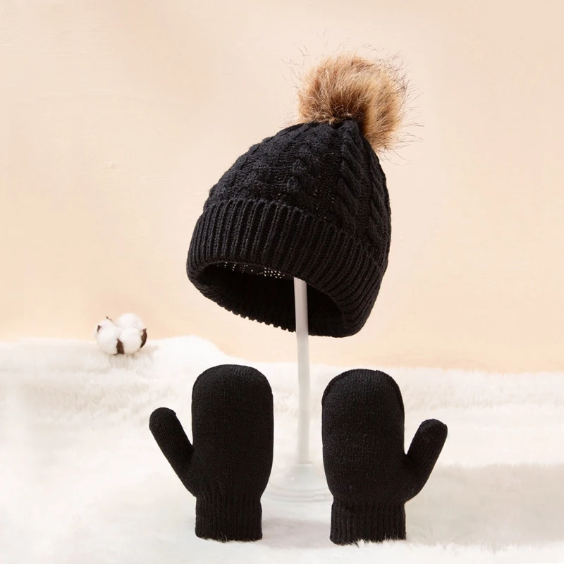 Comprar KLV 1 Conjunto de invierno sombrero caliente para bebés guantes Conjunto Color sólido pompón recién nacido sombrero de Mitten de espesar de bonete para niños 0-3Y