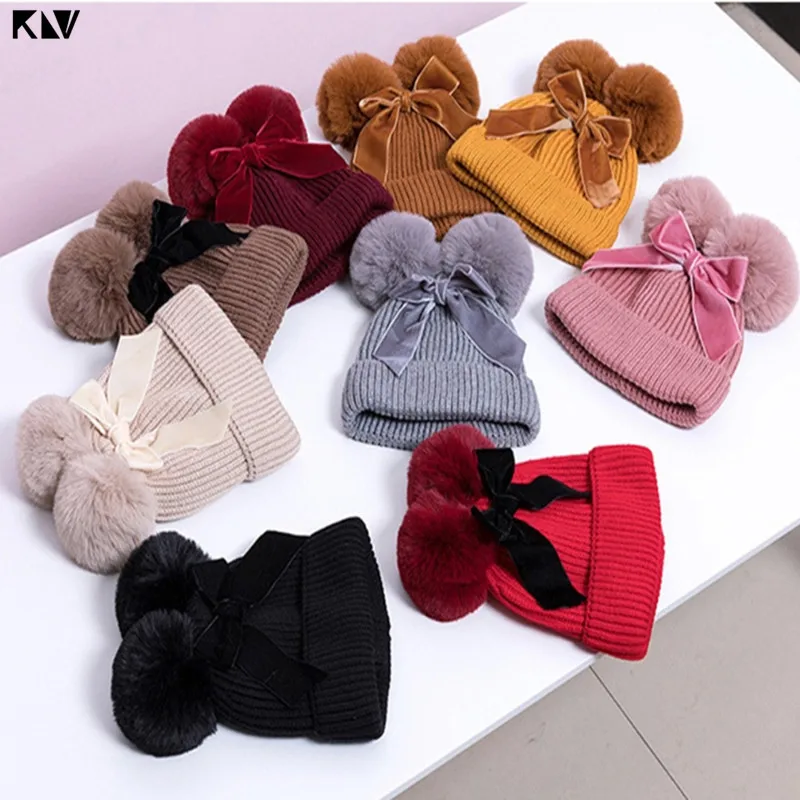 Comprar KLV-gorro de punto para bebé, cálido, grueso, doble Pompón, para niño