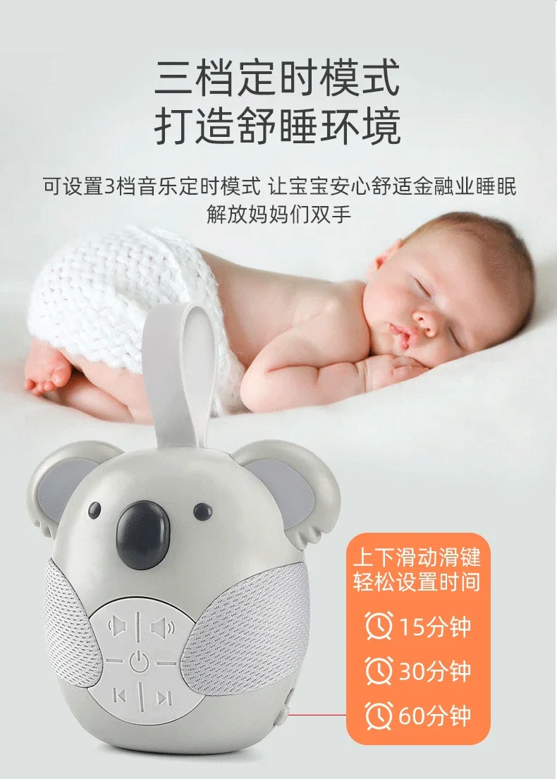 Comprar Koala portátil con sonido para dormir, máquina de ruido blanco para niños pequeños, reproductor de música relajante, Monitor de sueño para el hogar, cochecito de habitación de bebé