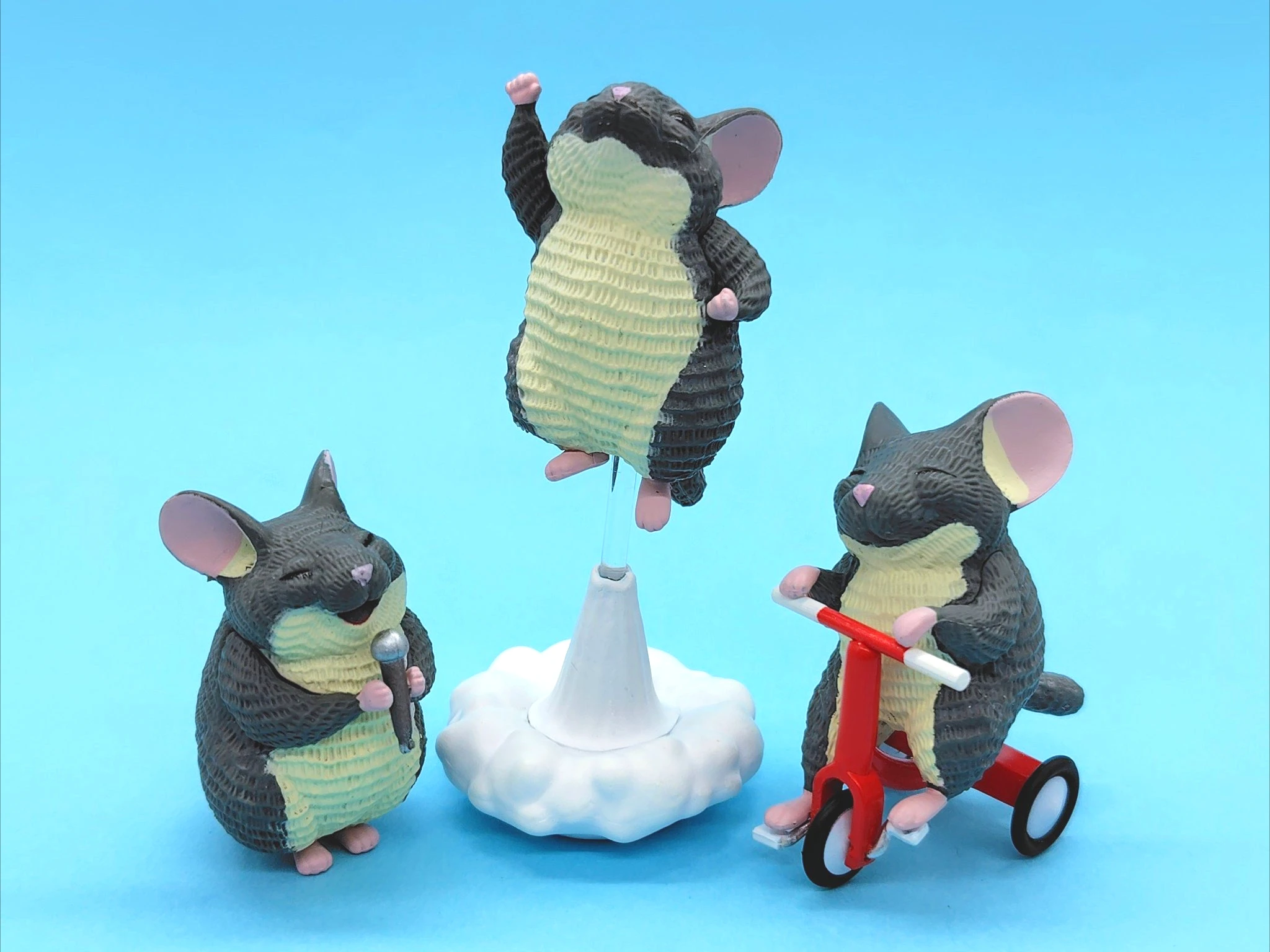 ¡La gama incluye "Derretir", una figura que parece que se derrite con el calor?!La genial figura "Tricycle" muestra la chinchilla maniobrándose su automóvil rojo brillante, el dinámico "Salto", la adorable figura "Singing" con ambas manos que sujeta firmemente el micrófono y la llamativa figura "Salto", que mide 82 mm de longitud.