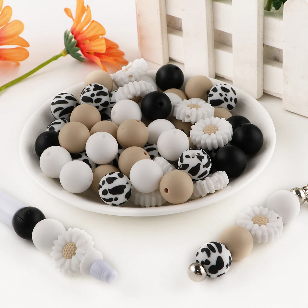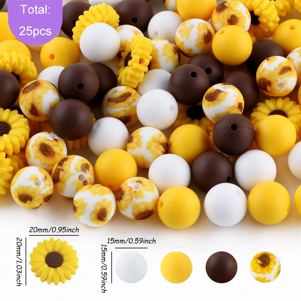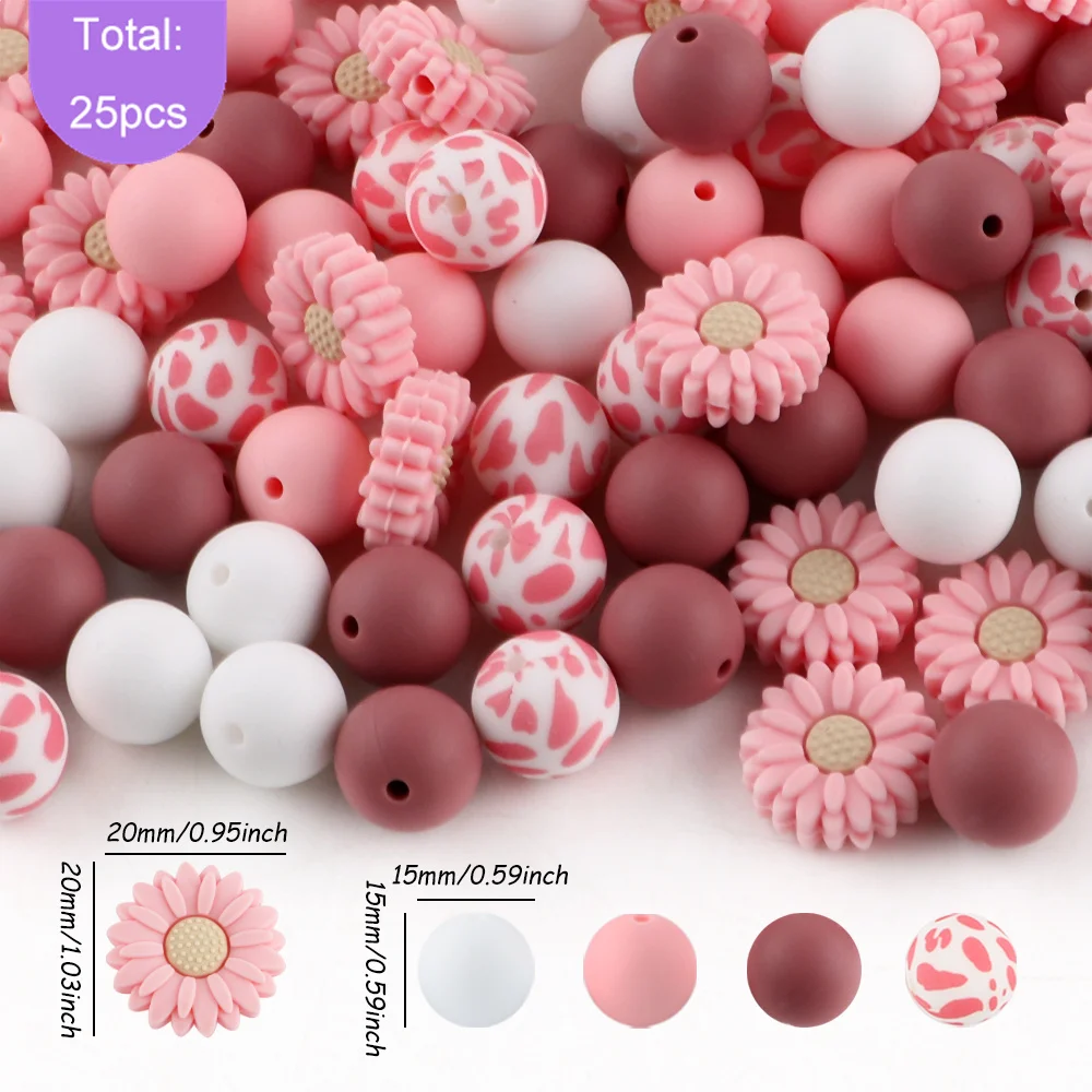 Kovict, 25 Uds., cuentas de silicona de Margarita, kits de cuentas redondas impresas para fabricación de joyería, pulsera DIY, collar, llavero, accesorios hechos a mano