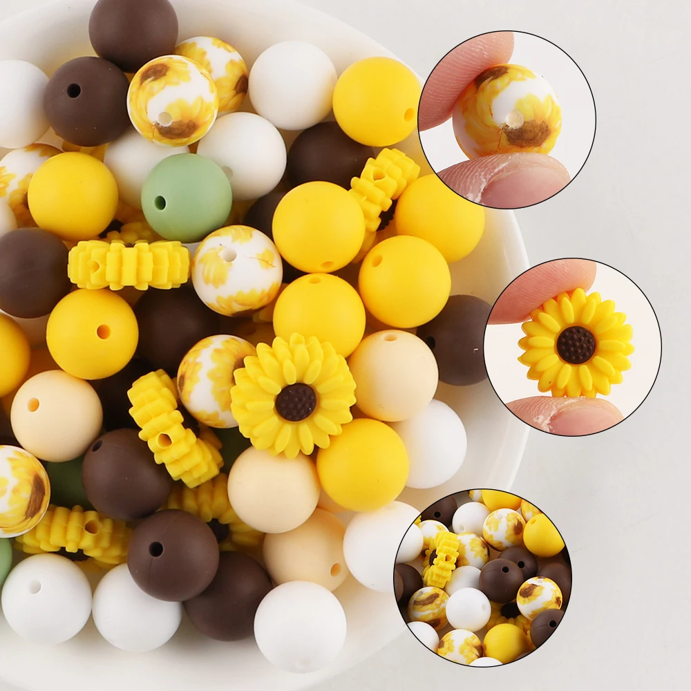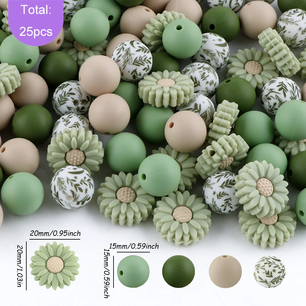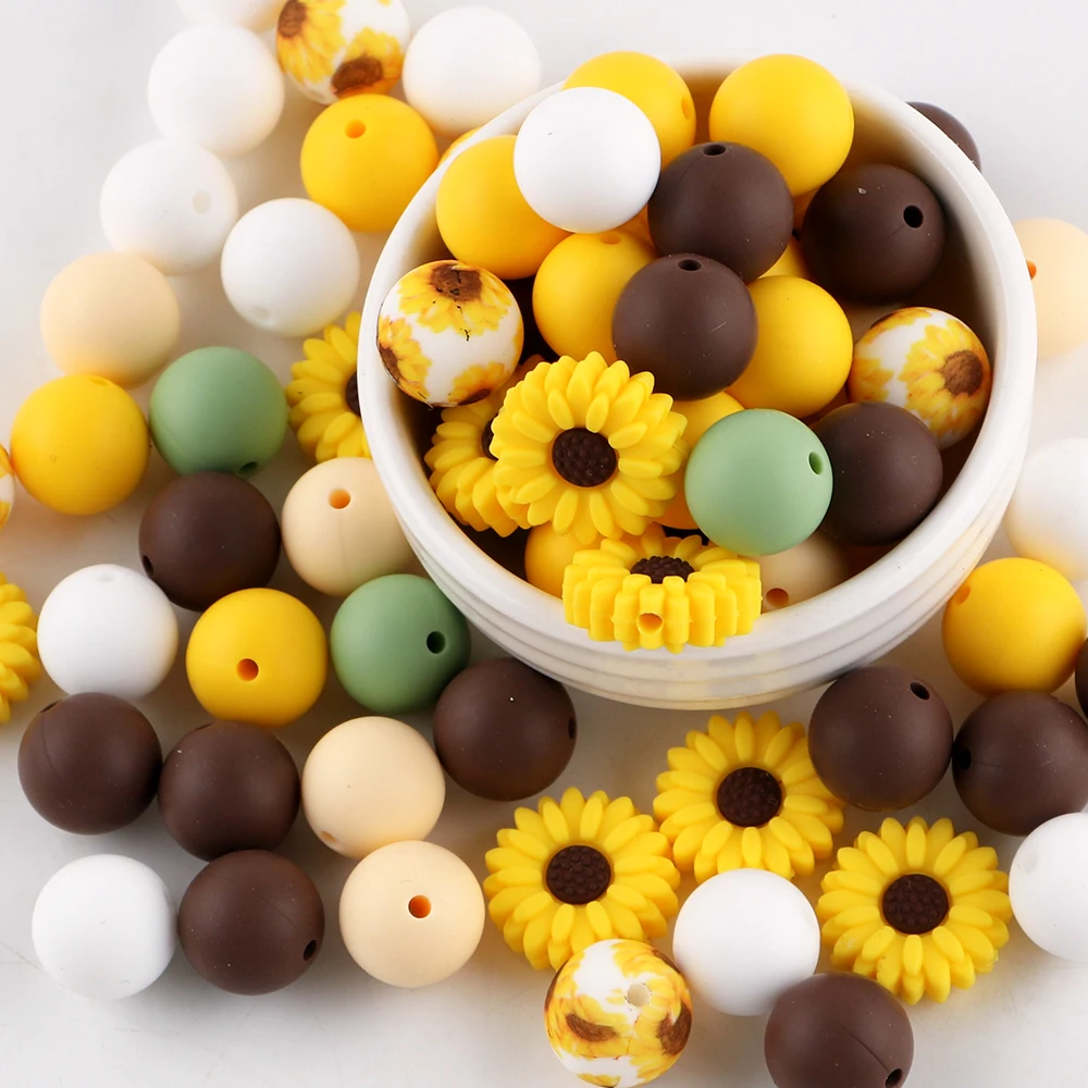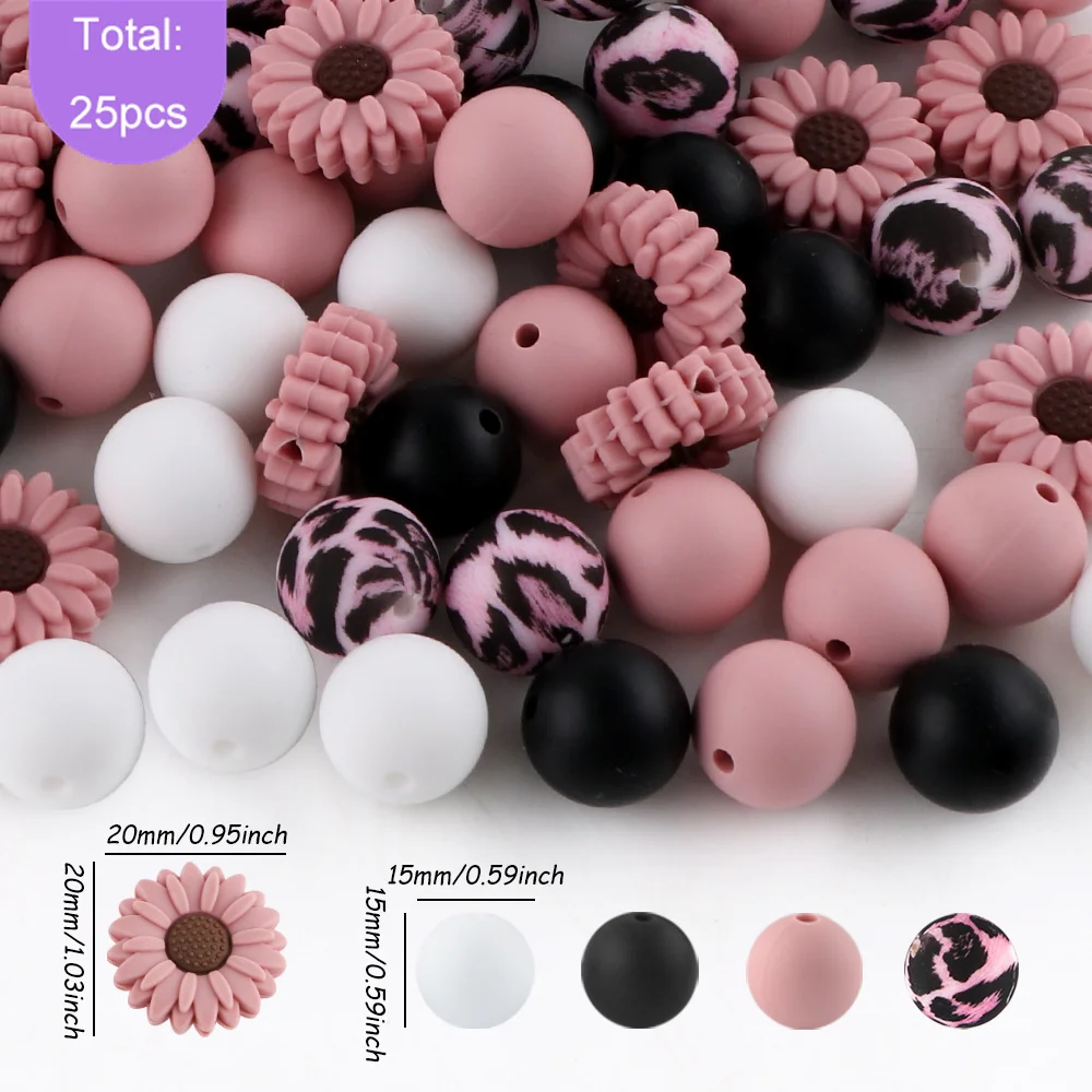 Kovict, 25 Uds., cuentas de silicona de Margarita, kits de cuentas redondas impresas para fabricación de joyería, pulsera DIY, collar, llavero, accesorios hechos a mano