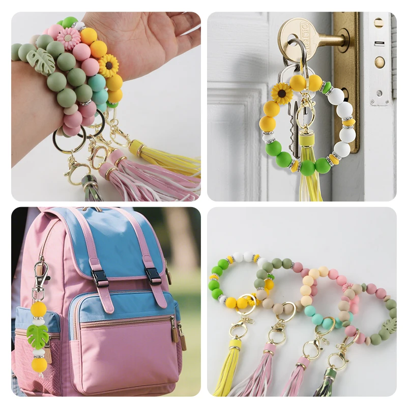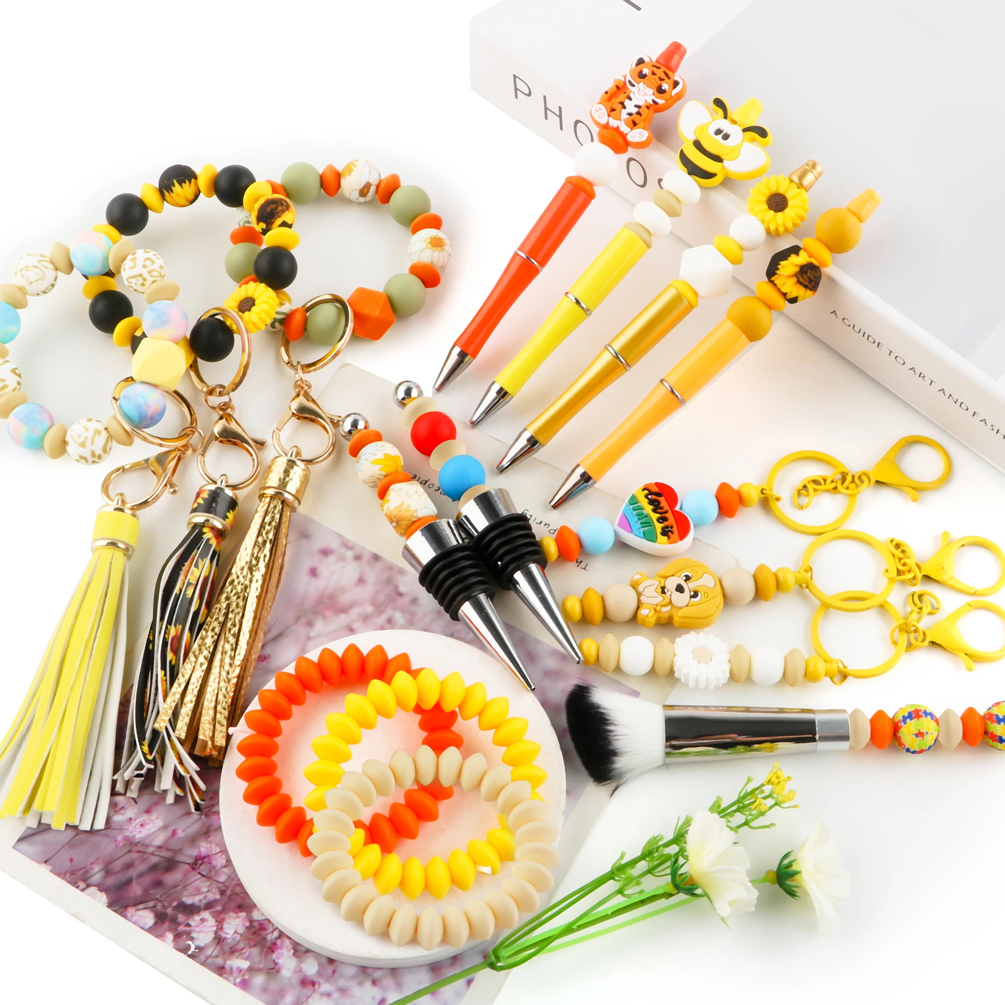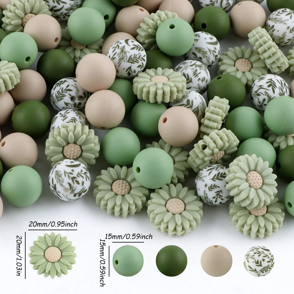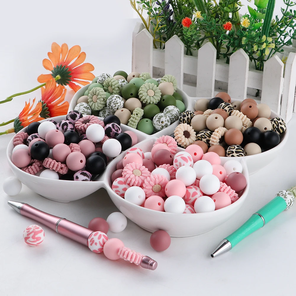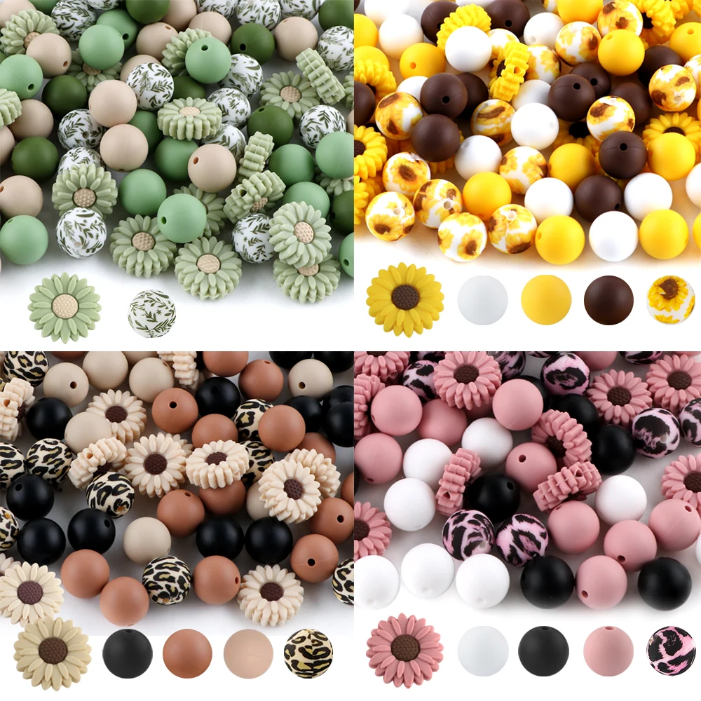 Comprar Kovict, 25 uds., cuentas de silicona con estampado de margaritas, kits de cuentas redondas para fabricación de joyería, DIY, pulsera, collar, llavero, accesorios hechos a mano