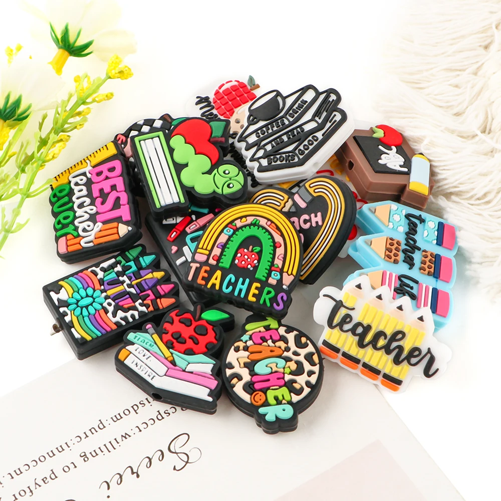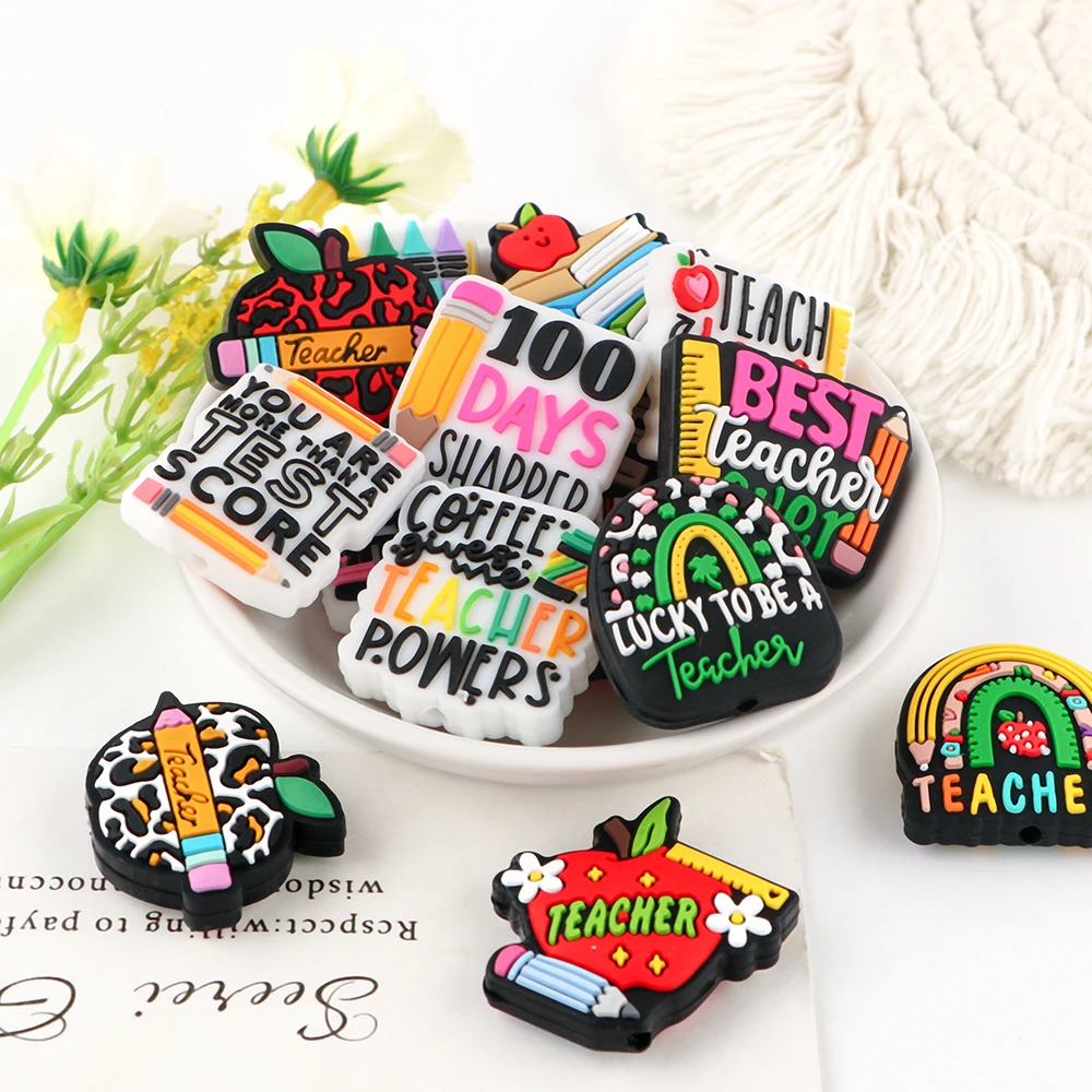 Kovict 5/10Pcs New Teacher Silicone Necklace Focal Beads Bulk DIY Keychain Necklace Bracelet Beads Handmade Gifts Accessories