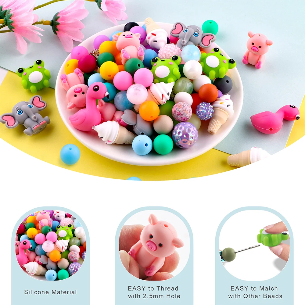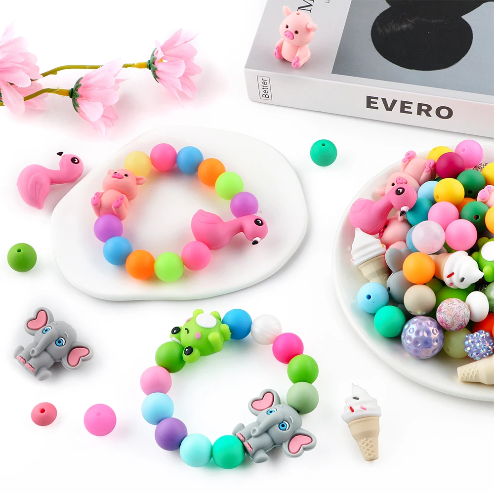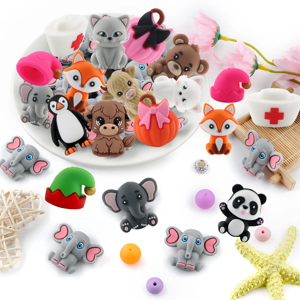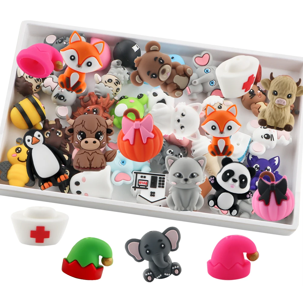 Kovict 5/10Pcs New 3D Animals Silicone Focal Beads For Jewelry Making DIY Necklace Bracelet KeyChain Handmade Accessories