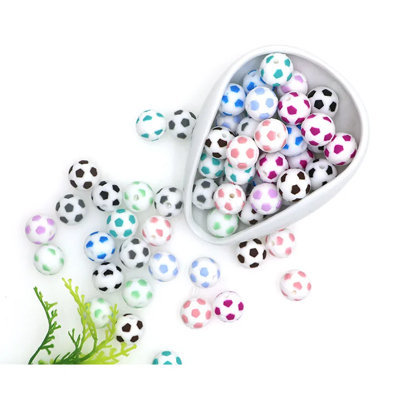 Kovict 10 piezas cuentas de silicona 15mm mordedor para bebé fútbol grado alimenticio silicona fútbol redondo cuenta DIY Cadena de chupete libre de BPA