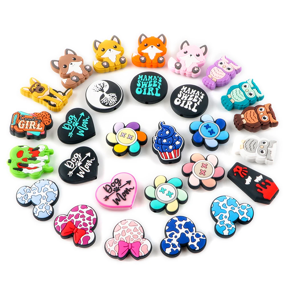 Comprar Kovict-minicuentas de silicona para manualidades, accesorios de joyería para collar, pulseras, ratón, búho, flor, 5/10 piezas