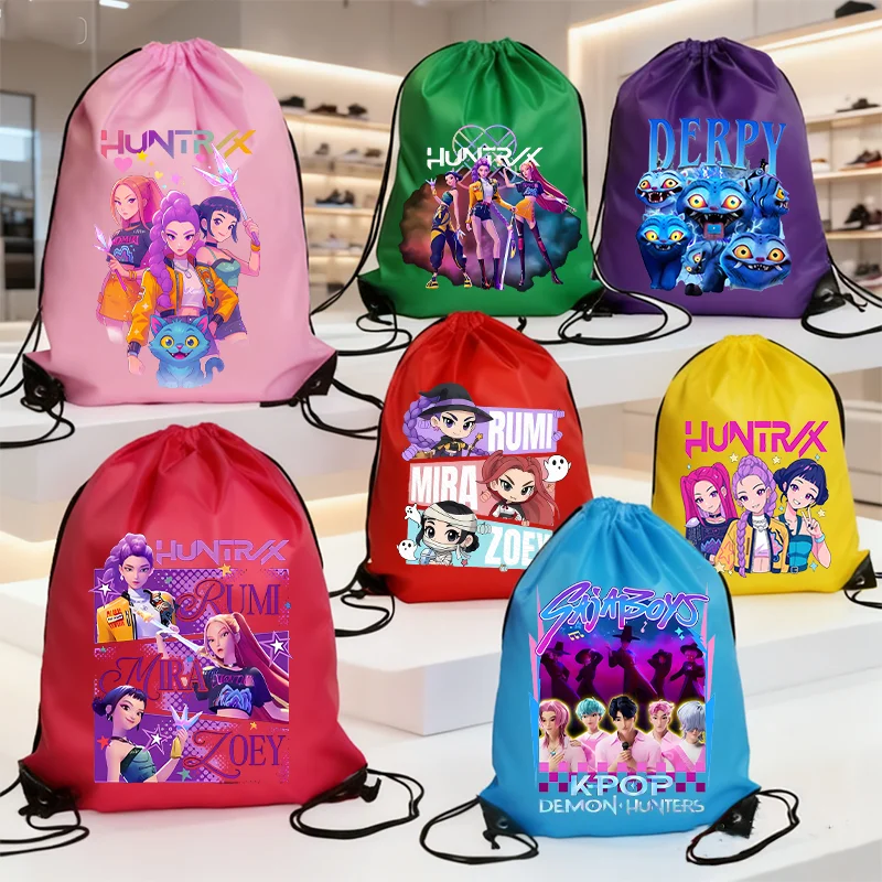 Comprar KPop Demon Hunter Mira Rumi Zoey Tiger bolsa con cordón Saja niños niñas niños baile portátil no tejido impermeable bolsa de viaje ligera
