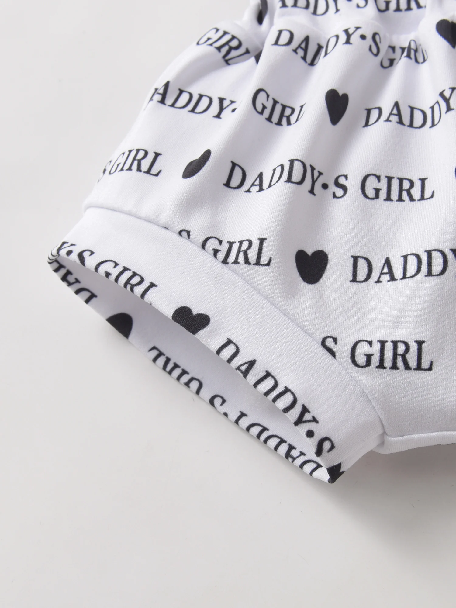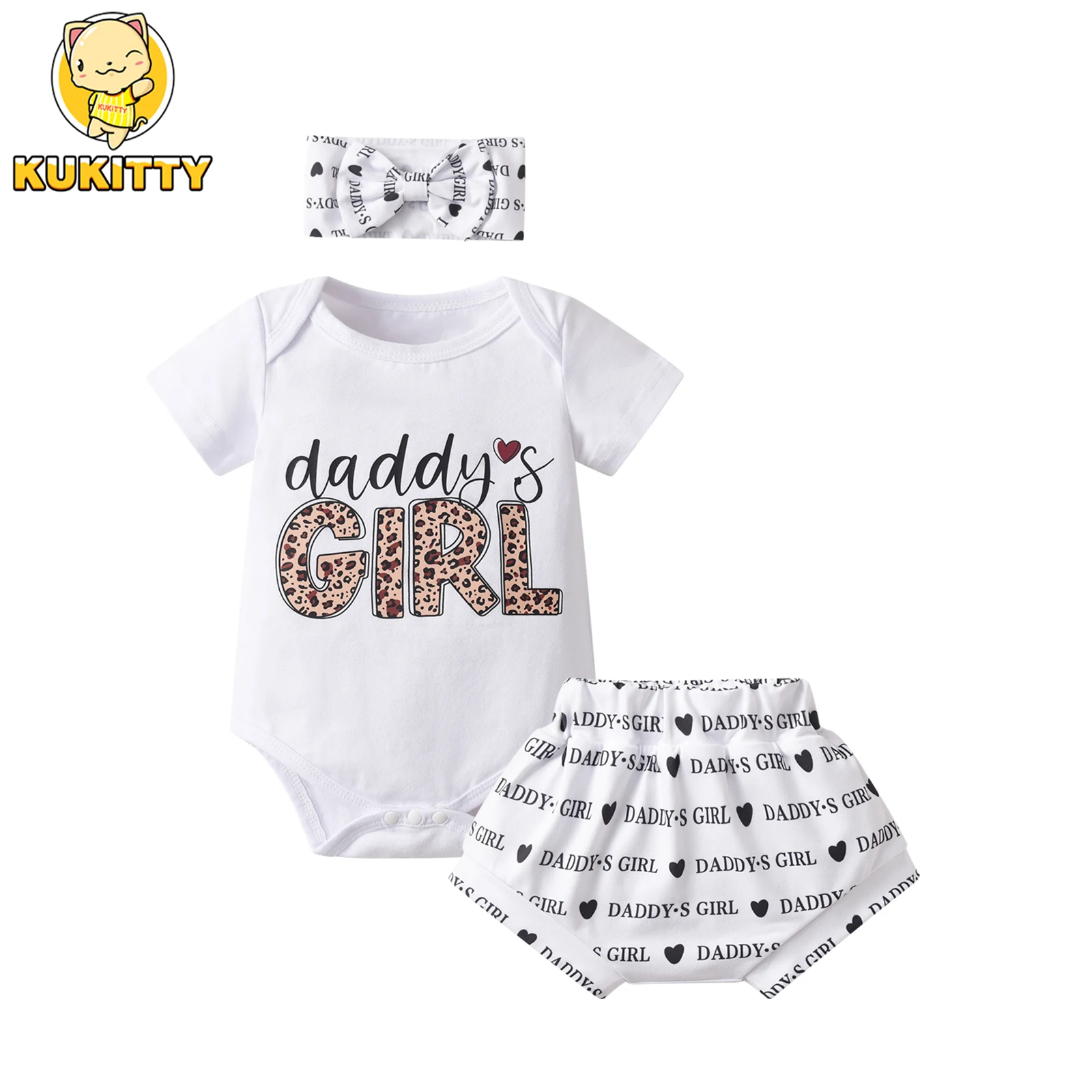 Comprar KuKitty Conjunto de ropa de verano de 3 piezas con estampado de letras para niñas pequeñas + pantalones cortos de PP + diadema