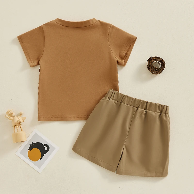 Conjuntos de verano para niños pequeños, camisetas de manga corta con botones de rayas de Color en contraste, Tops y pantalones cortos, conjunto de ropa de 2 piezas
