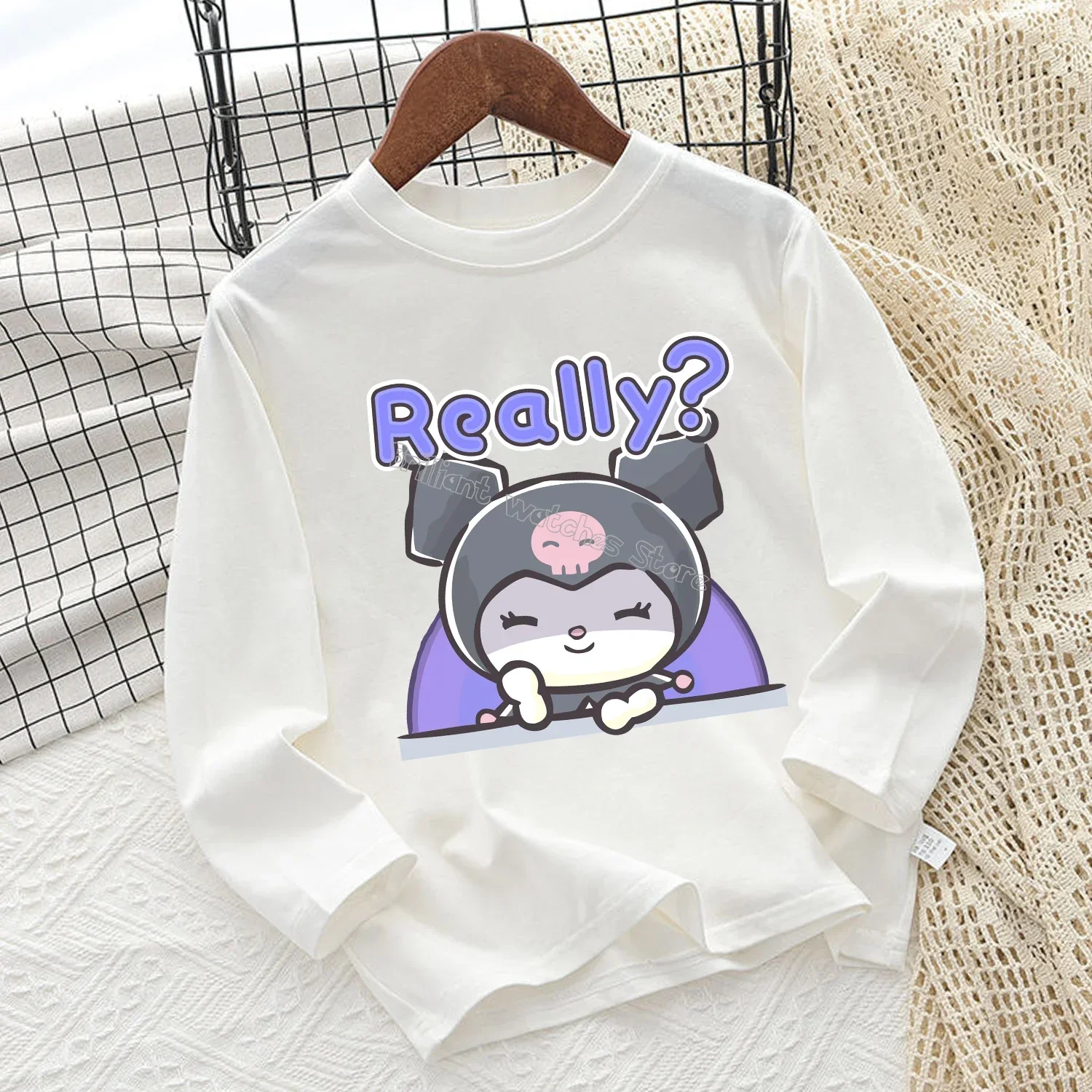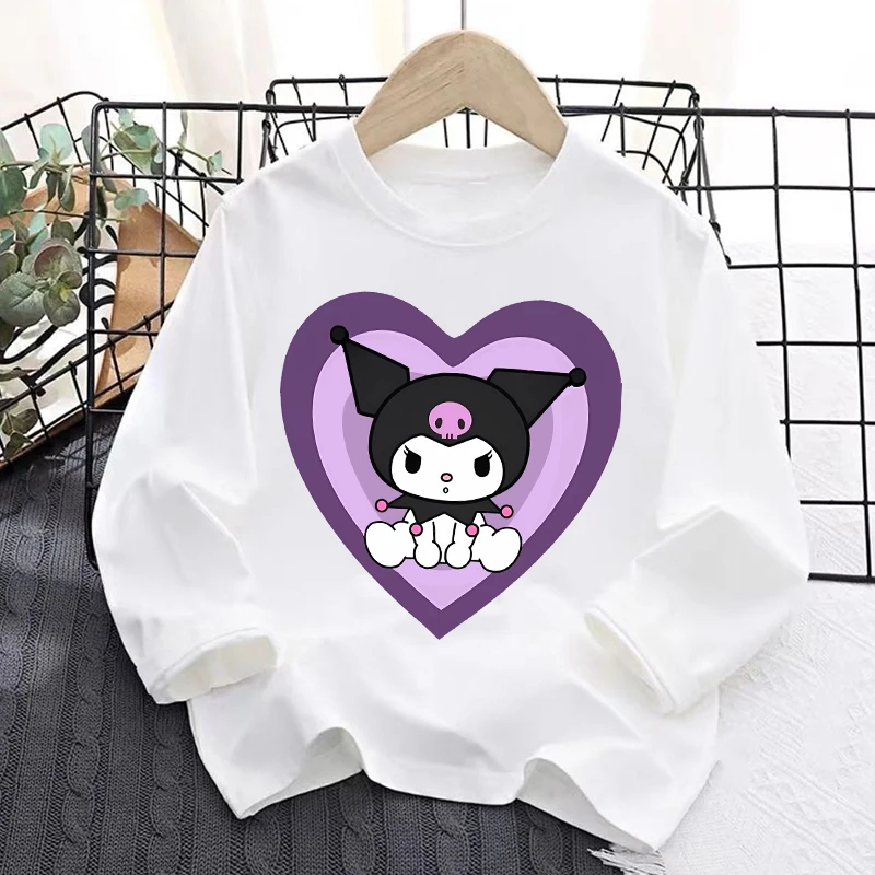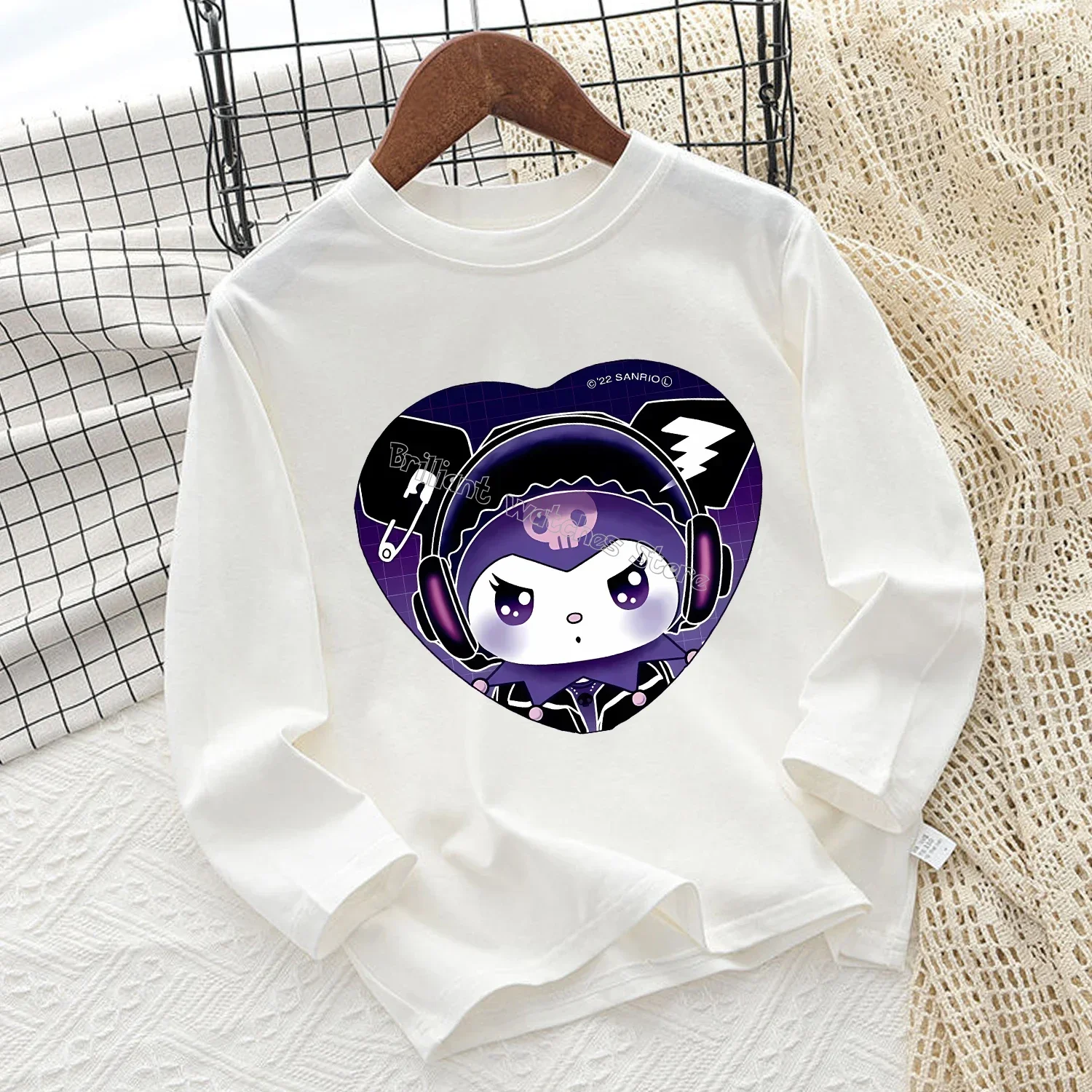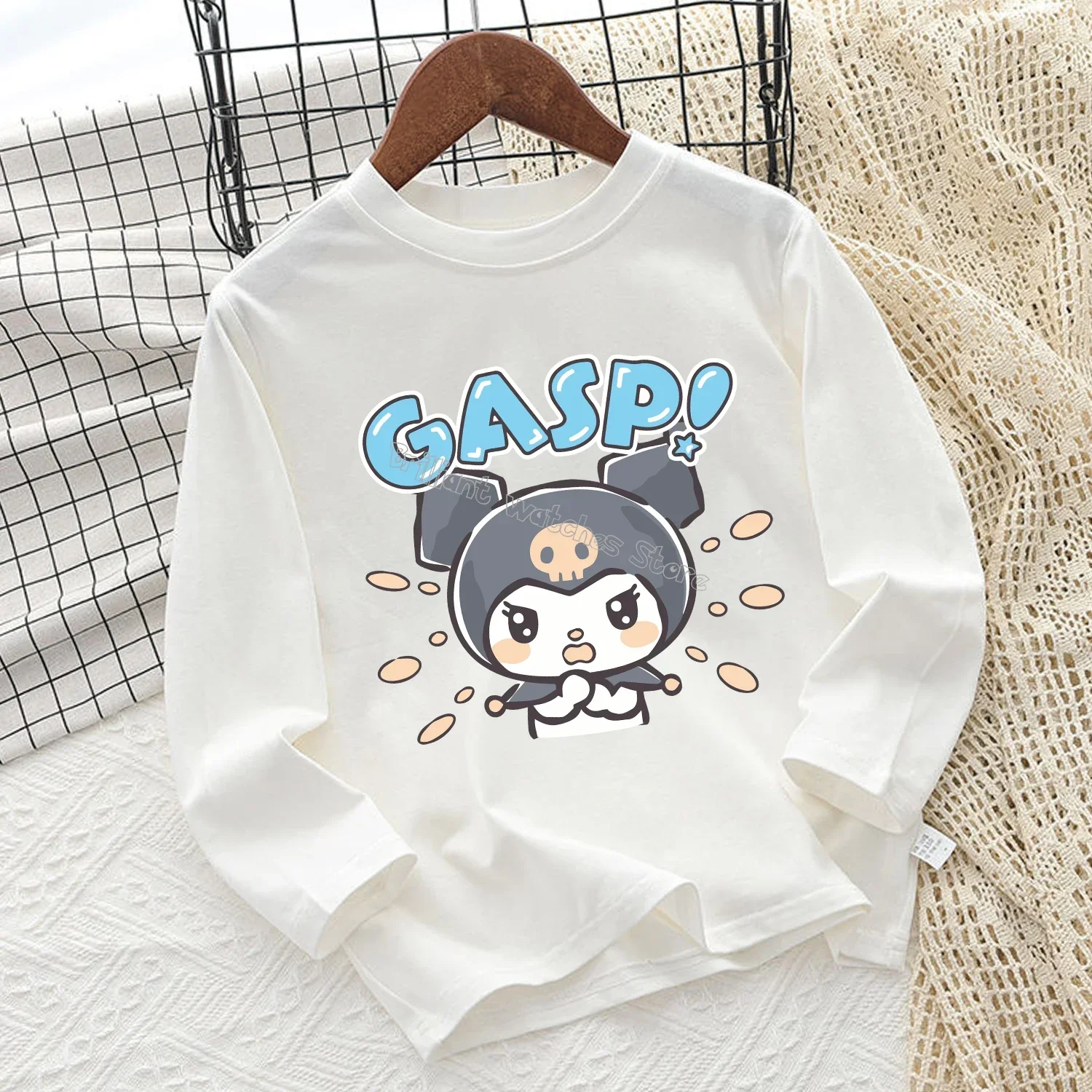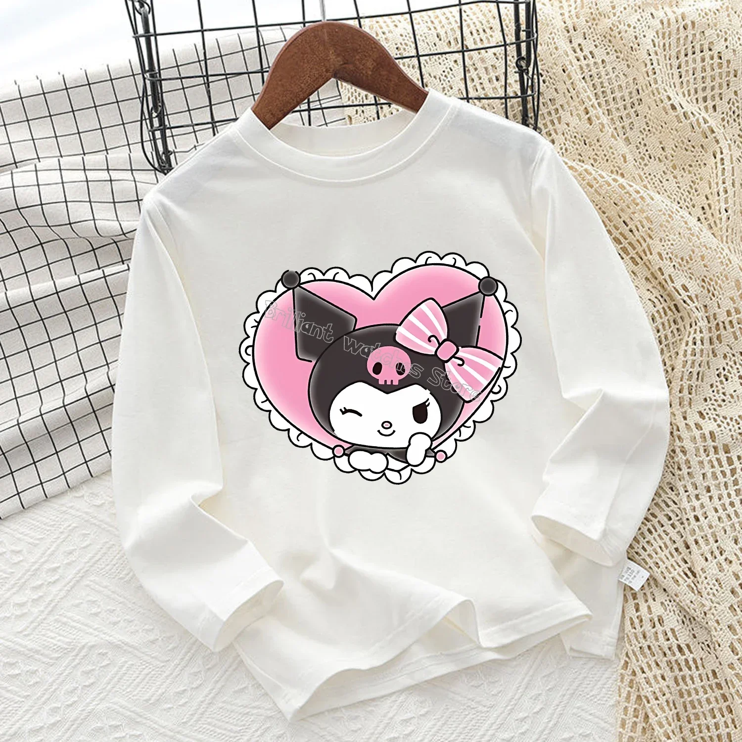 Comprar Kuromi manga larga para niños lindo dibujo animado Anime caftán nuevas niñas ropa Casual blanca blusa moda niños ropa Top regalo