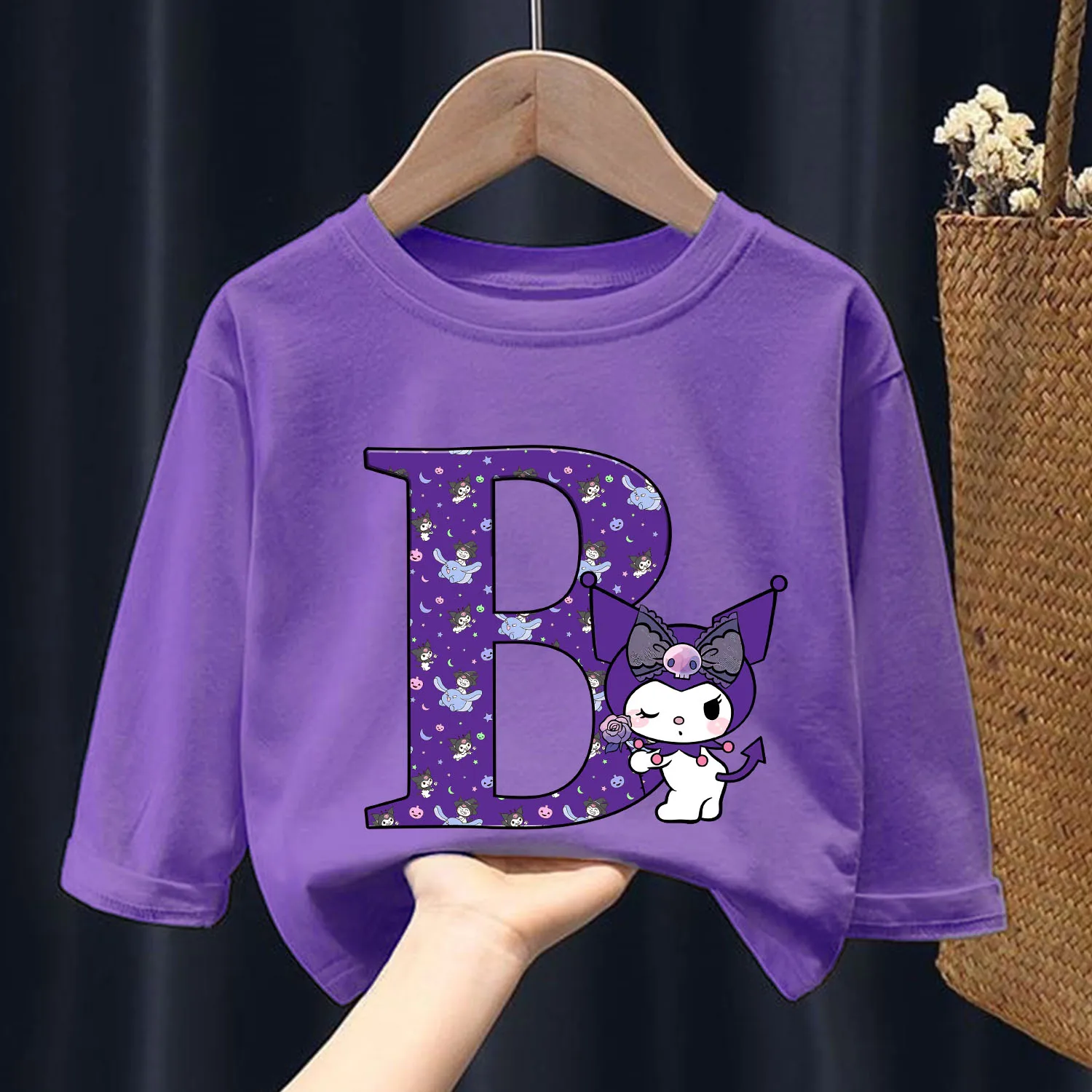 Kuromi-ropa de manga larga para niños, ropa de dibujos animados con letras A-Z, caftán informal morado, ropa de moda para niños, blusa de cuello redondo, regalo