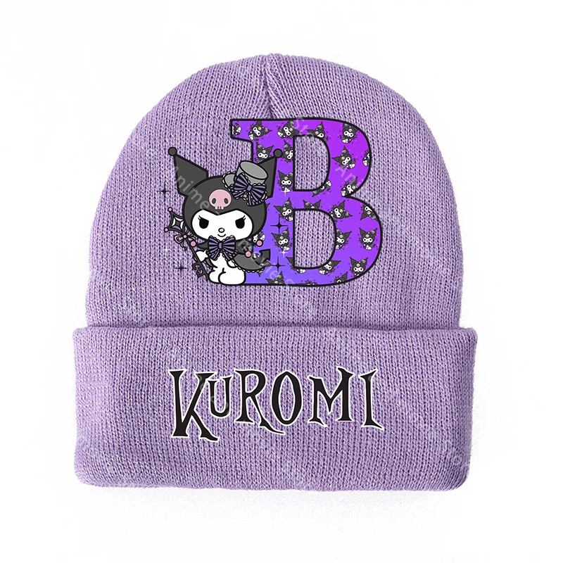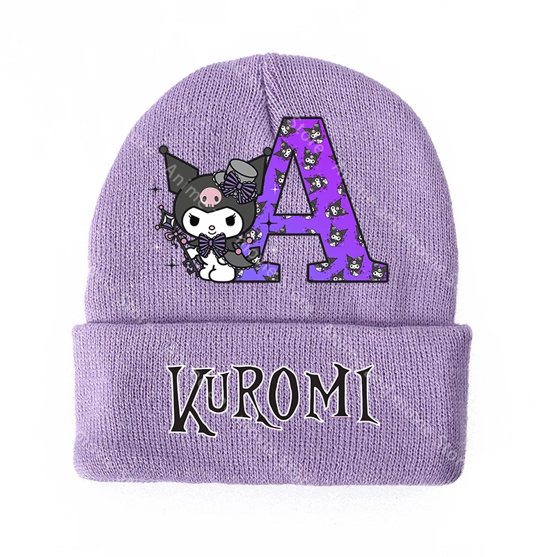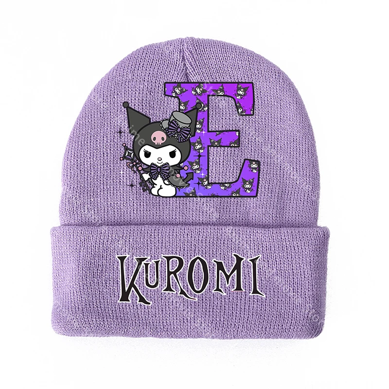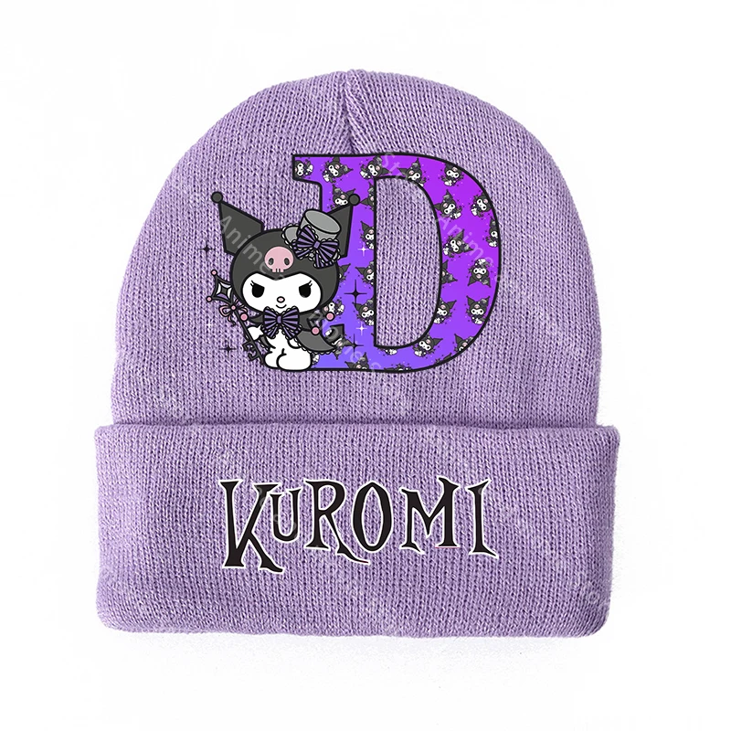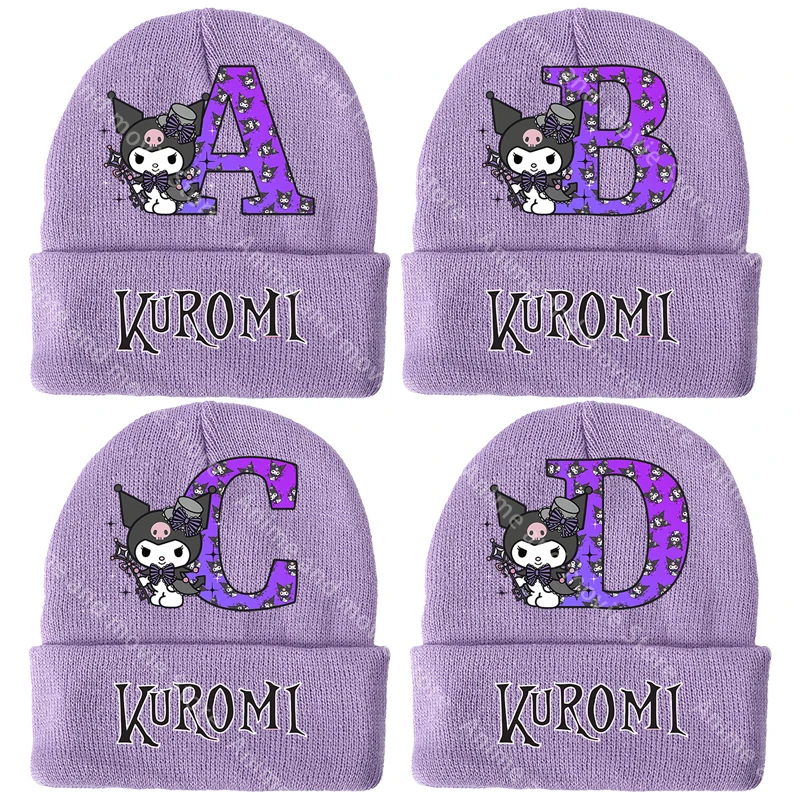 Kuromis-sombreros tejidos para niñas, gorros de invierno para niños, gorro de lana cálido con letras estampadas, dibujos animados de Anime, regalos bonitos de cumpleaños para niños