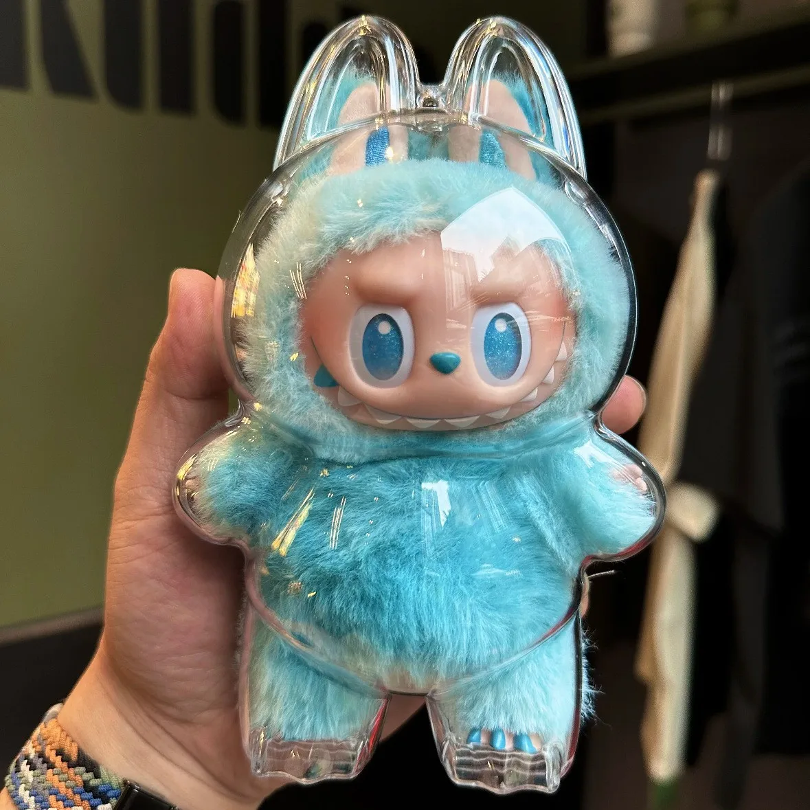 Para Labubu 1 2 3 4 cubierta protectora transparente juguetes de peluche cubierta muñeca de peluche bolsa de exhibición Mini caja de almacenamiento portátil estuche antipolvo