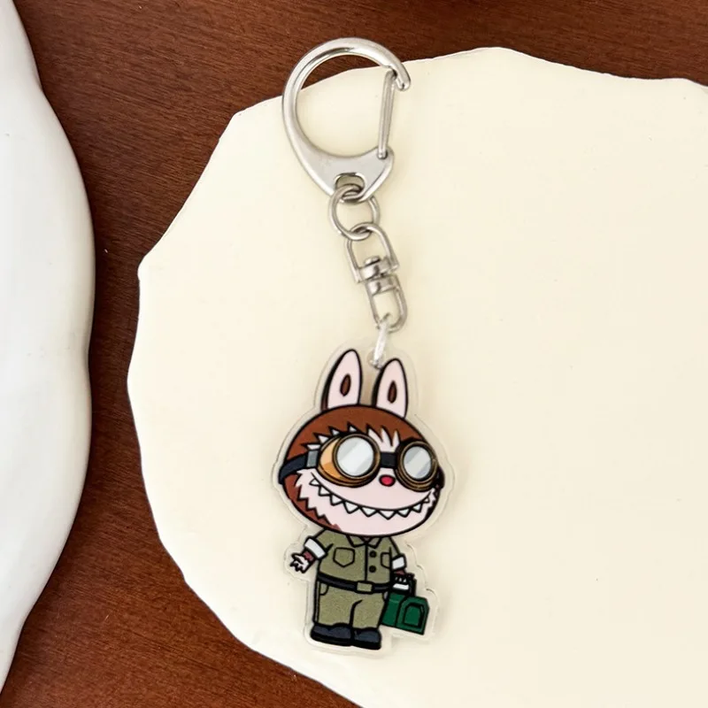 Labubu-Llavero acrílico de dibujos animados de los monstruos, bolso escolar de tendencia, colgante de llave de coche, pareja, baratija Kawaii, llavero de regalo, accesorio