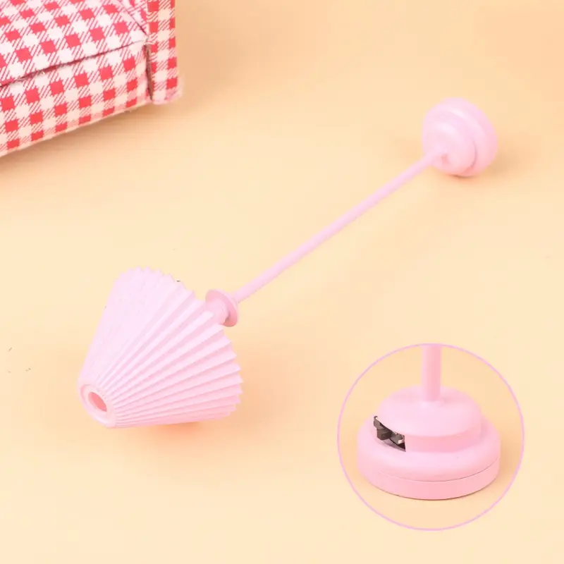 Comprar Lámpara LED rosa en miniatura para casa de muñecas, lámpara de pie, lámpara de mesa, modelo de juguete para decoración del hogar, accesorios para casa de muñecas, 1:12