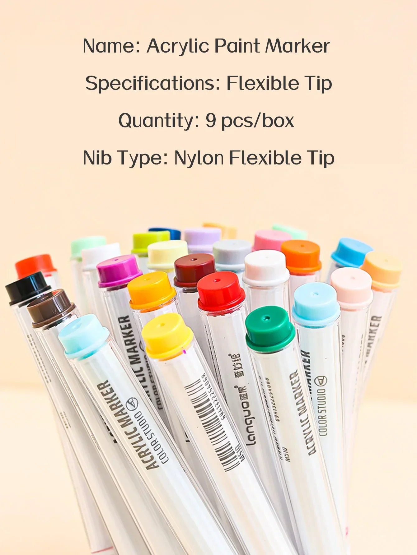 9 colores/caja bolígrafos de pintura acrílica pincel rotulador para artista pintura en roca tela madera plástico papel bricolaje fabricación de tarjetas Graffiti para estudiantes bolígrafos de pintura acrílica escuela Oficina estética papelería suministros de arte