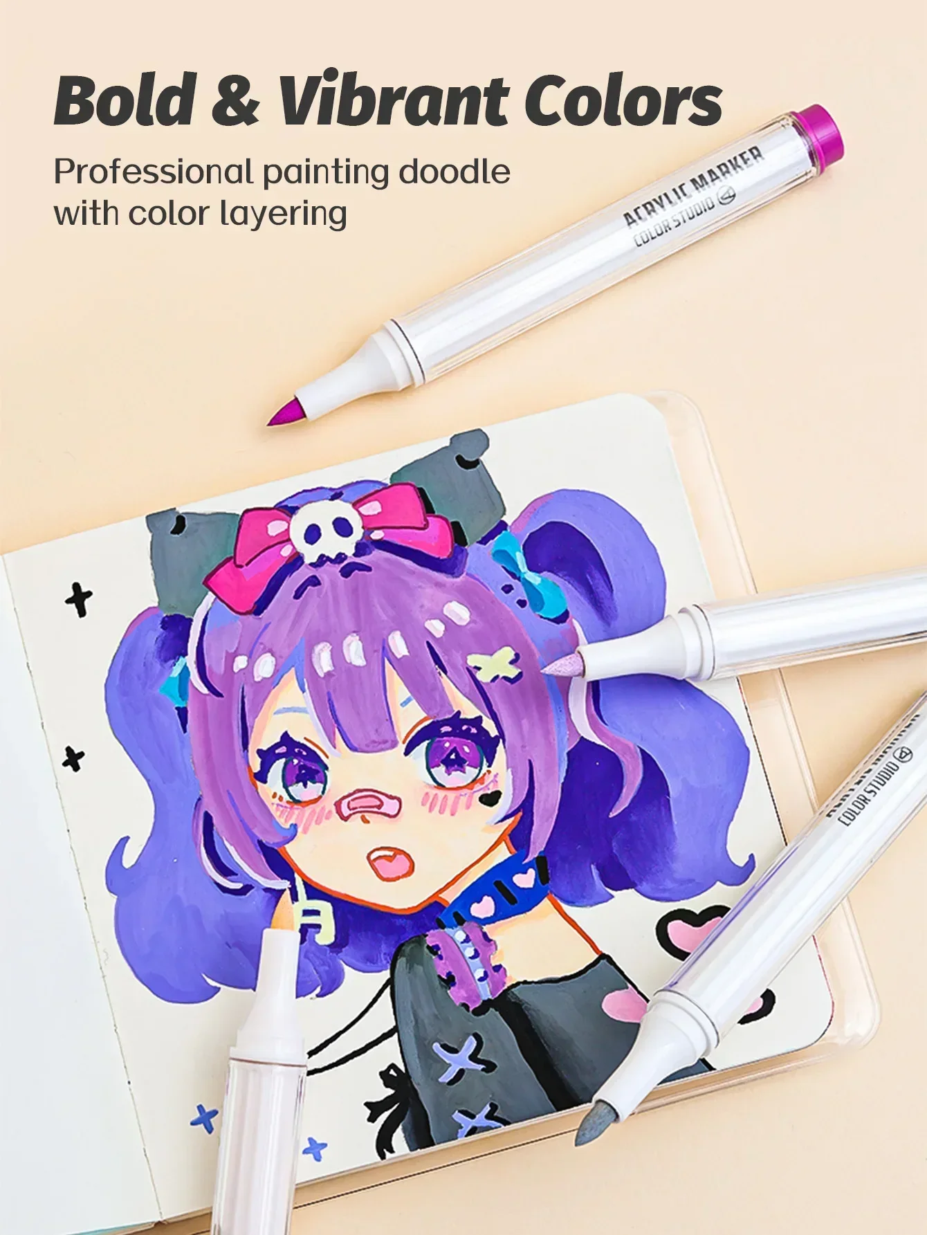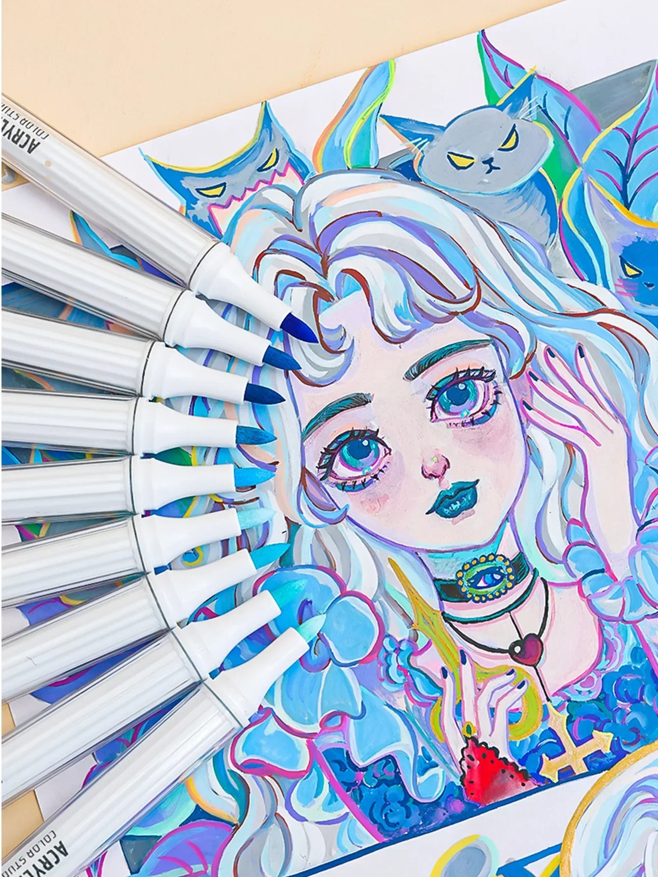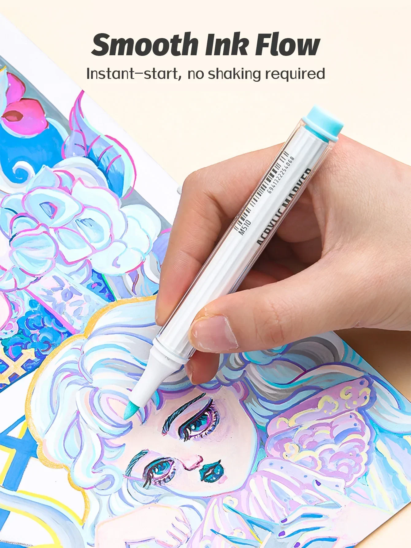 Bolígrafos de pintura acrílica, colores de pincel suaves con sus colores brillantes y ricos, se pueden superponer, gran capacidad.
