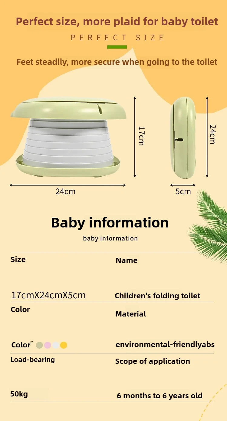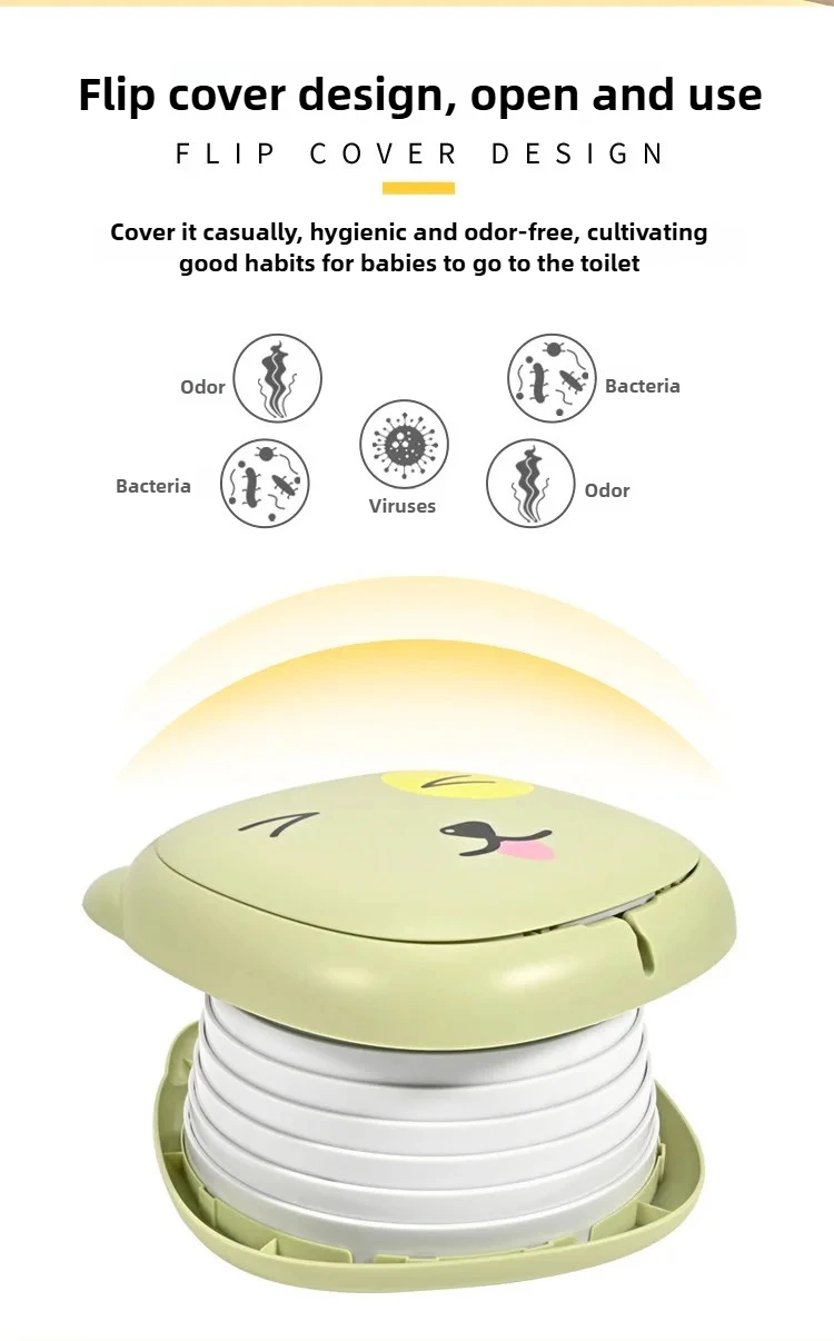 Baño extraíble para niños de dibujos animadosLigero y portátil, puede soportar 70 kg.Material: ABS + PPTamaño: como se muestra en la imagenColor: amarillo, rosa, verde, gris