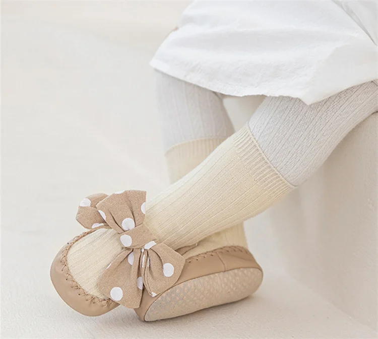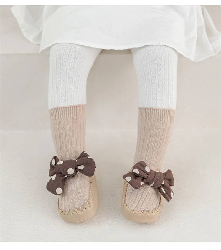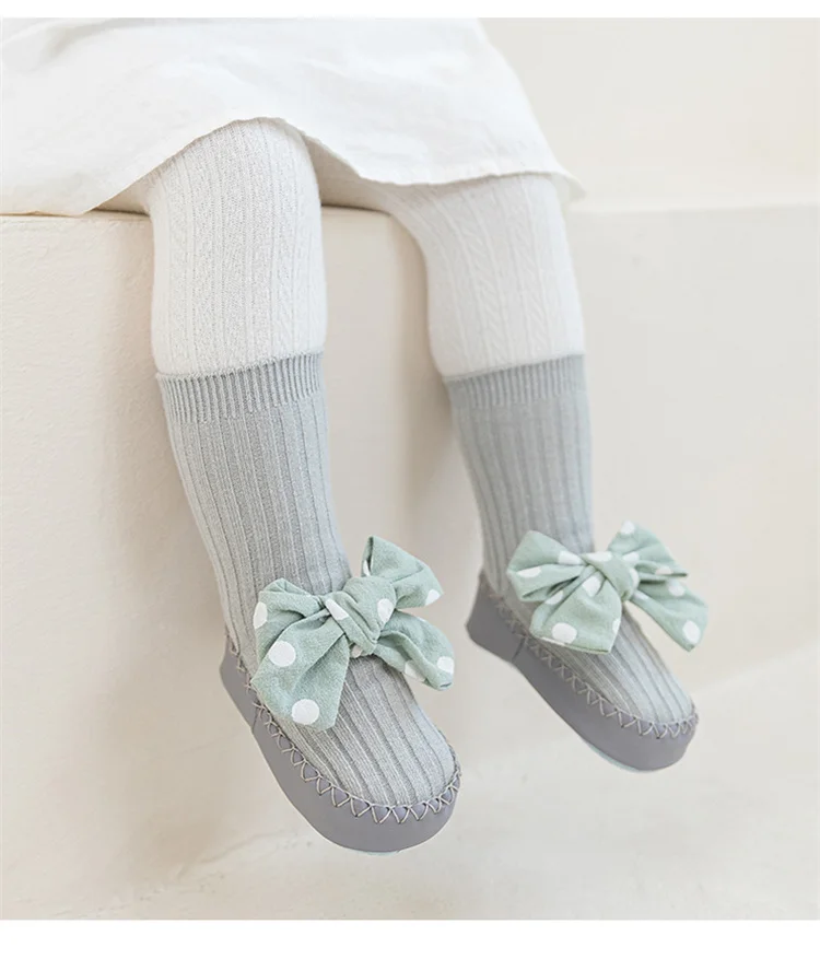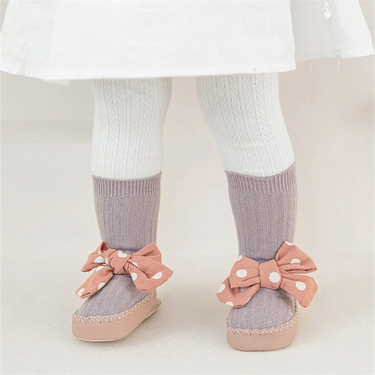 Comprar Lawadka-Calcetines con suelas de goma para bebé recién nacido, medias con lazo de puntos para Primavera, zapatos antideslizantes de 0 a 18 meses