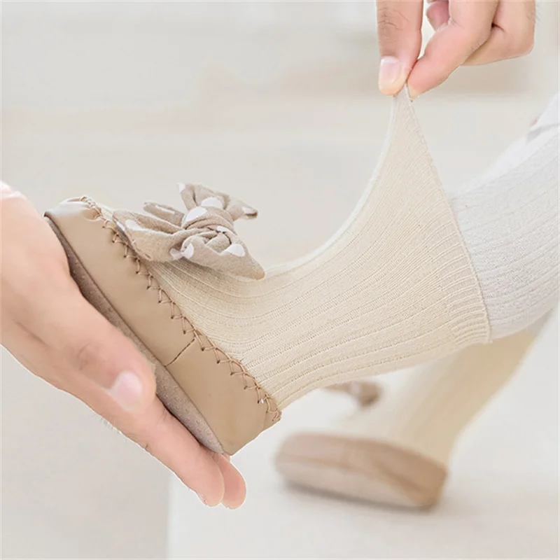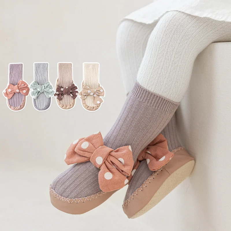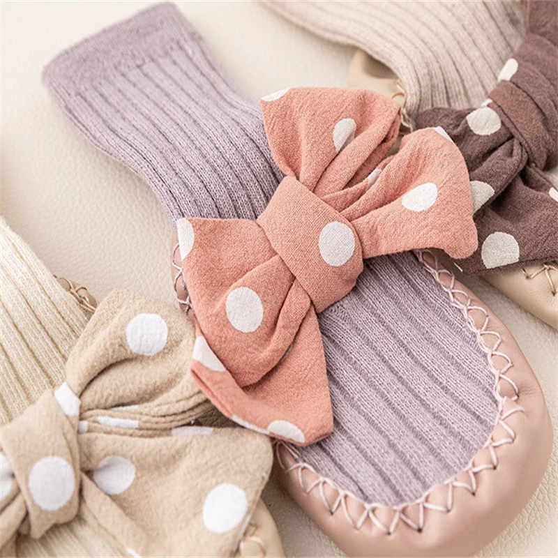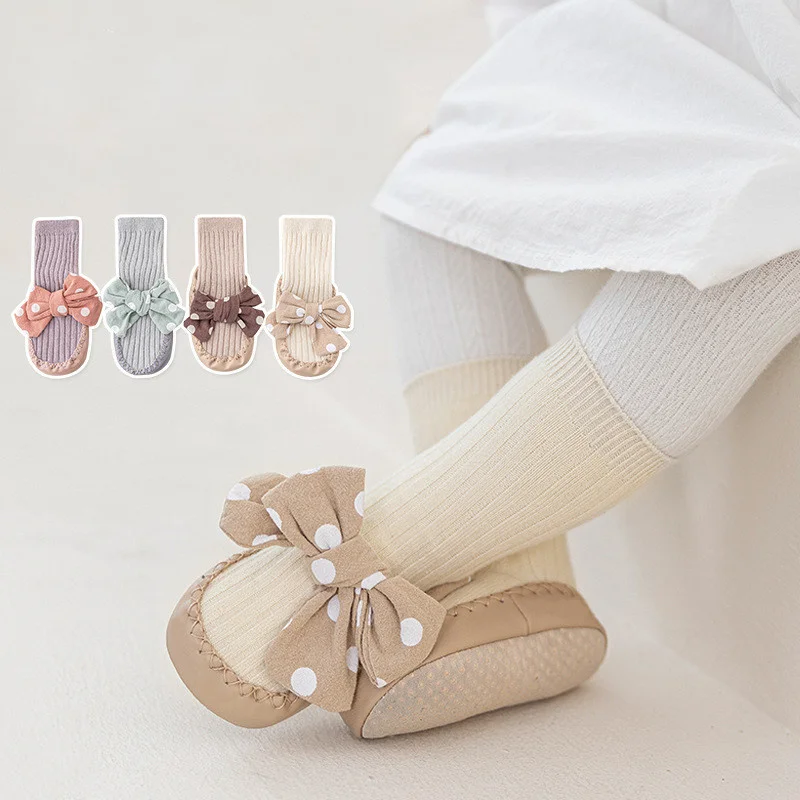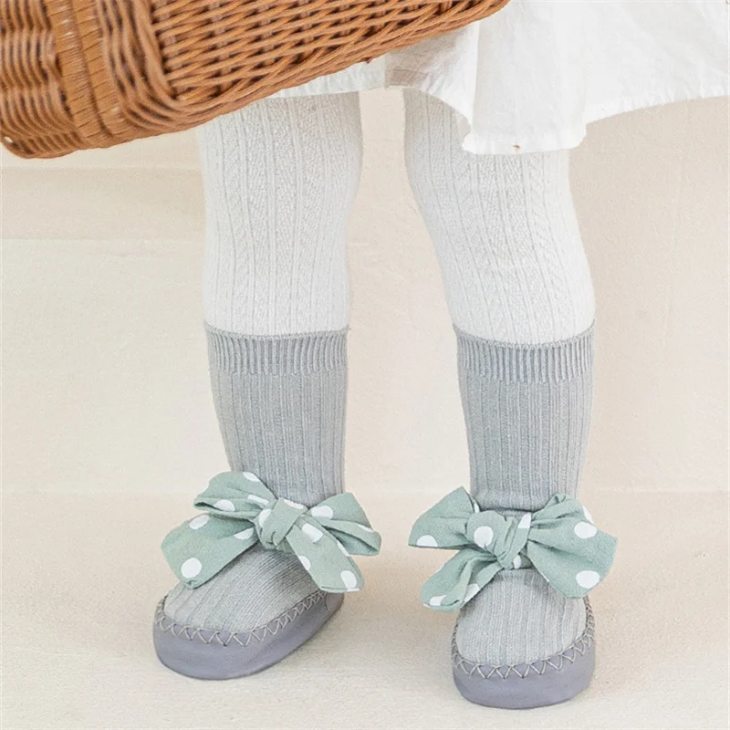 Comprar Lawadka-Calcetines con suelas de goma para bebé recién nacido, medias con lazo de puntos para Primavera, zapatos antideslizantes de 0 a 18 meses