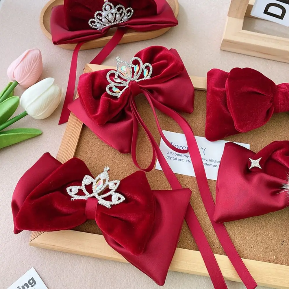 Comprar Lazo de terciopelo rojo de felpa para niños, horquilla de tela, perla, Año Nuevo Chino, tocado, traje Tang, pinza para el pelo, corona de cristal