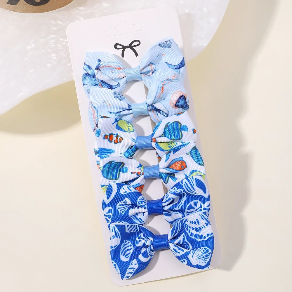 Comprar Lazos estampados de cinta de grogrén para niña, pinzas para el pelo con Clip, horquillas, pasadores, accesorios para el cabello, 6 unidades por juego